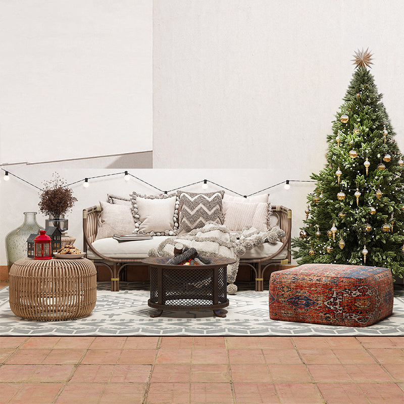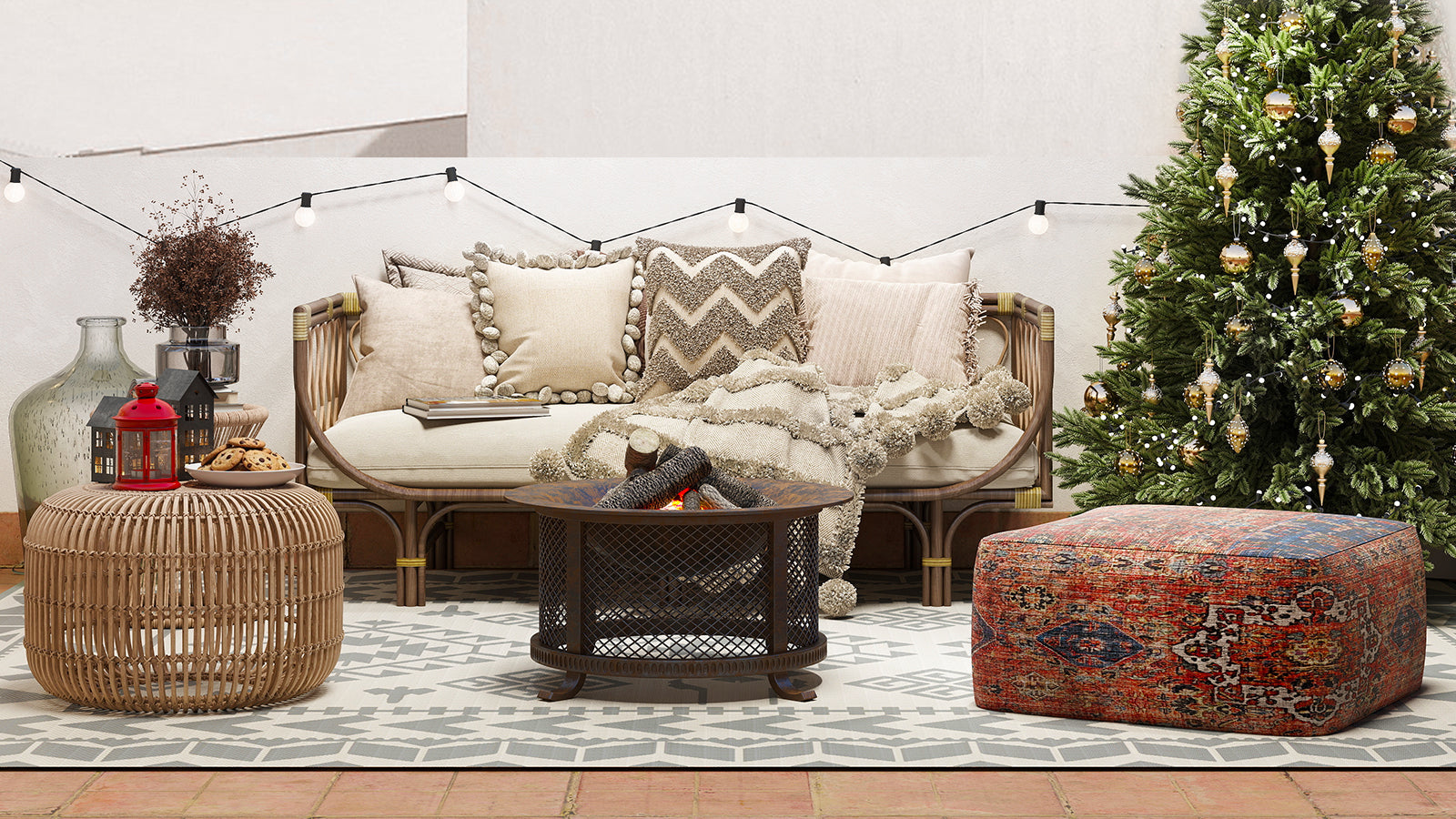 Add warmth and charm to cold evenings with outdoor décor made for winter – soft outdoor cushions, patterned rugs, planters, lanterns and seasonal accents to refresh any patio or garden.