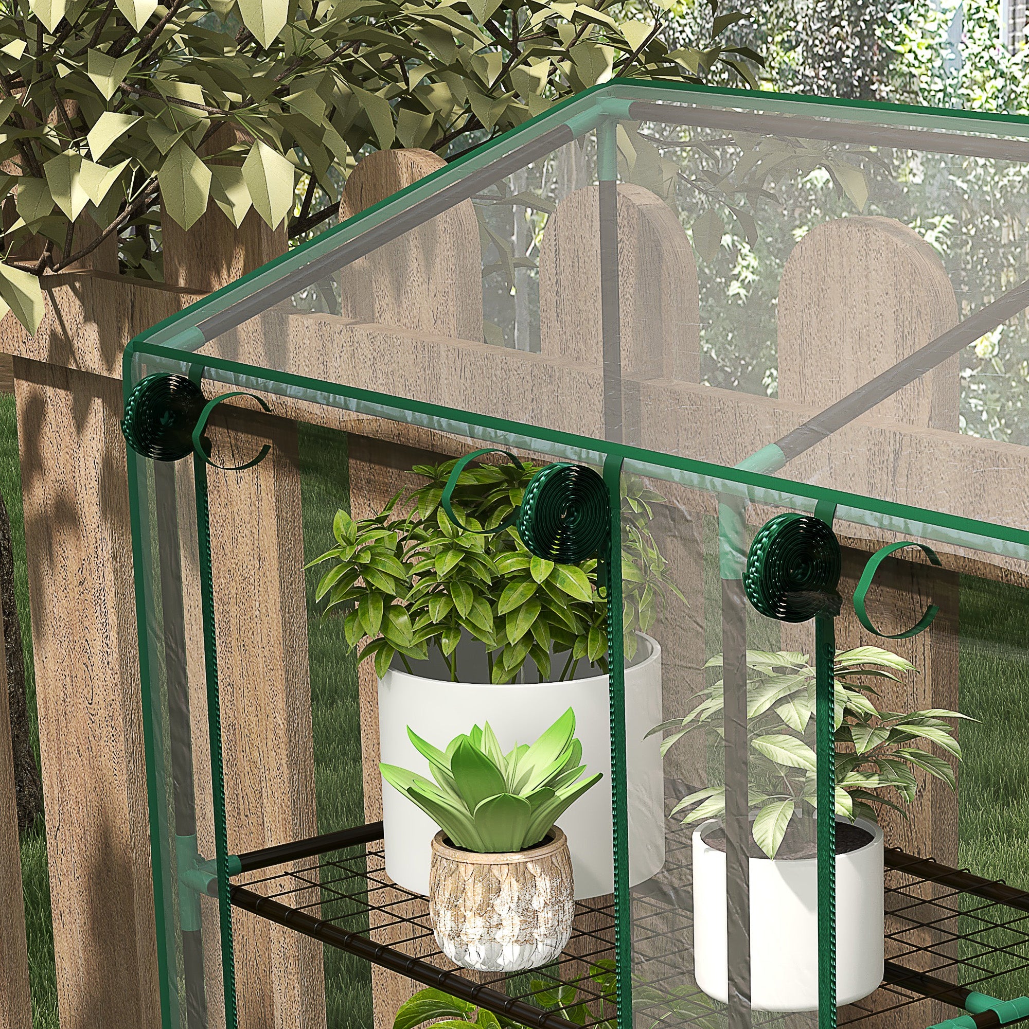 - Two Roll-up Doors: Roll the zippered doors up and fix it at the top by the straps. Provides easy access to the small greenhouse and good ventilation, so temperature and humidity are in your hands