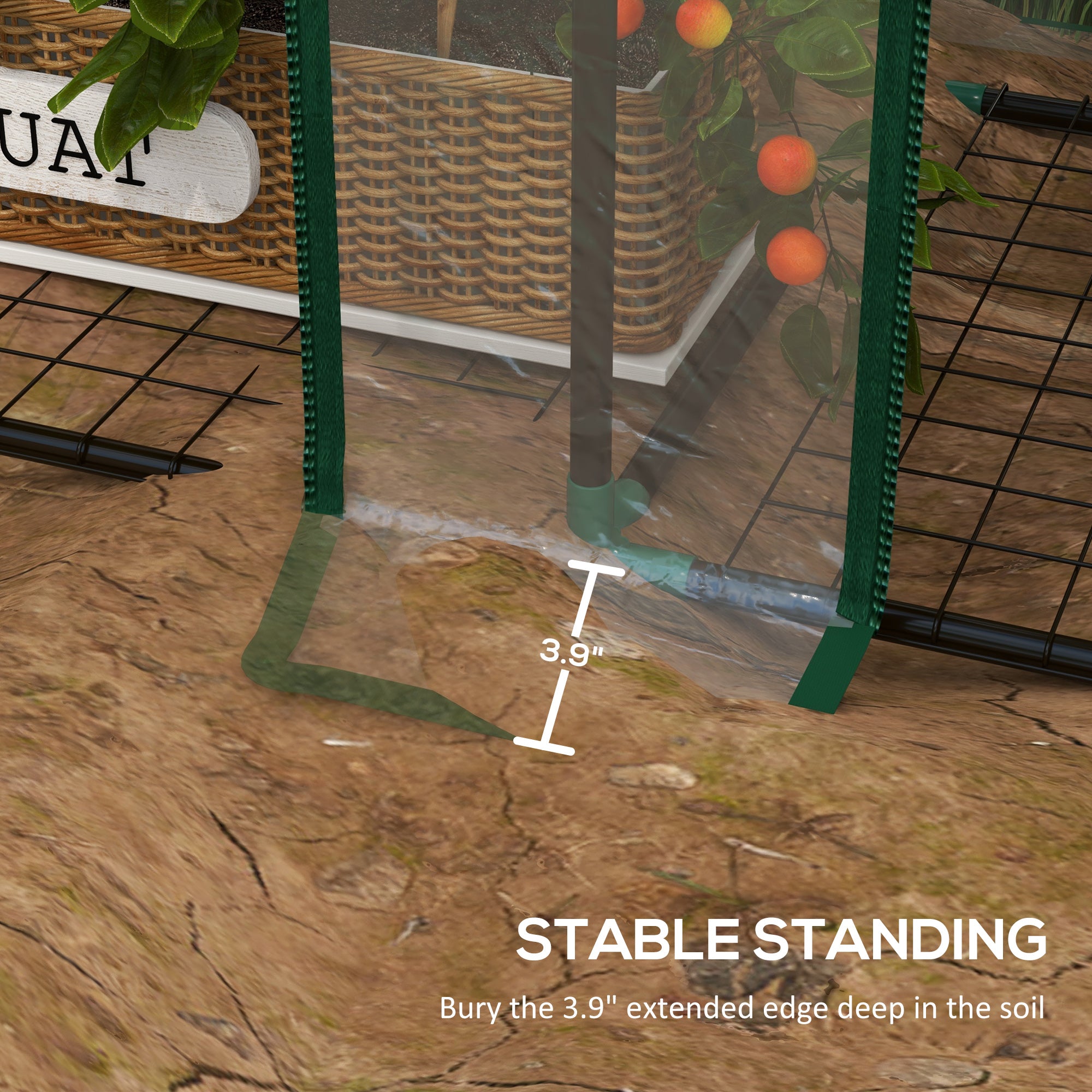 - Overlong cover to bury into ground for seal and stability;