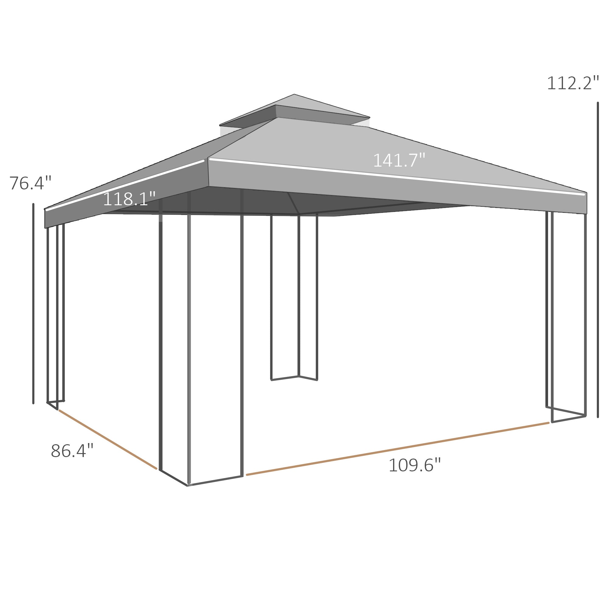 - Double Canopy: Our elegant outdoor gazebo has a two-tier vented canopy that not only adds charm, but it also helps redirect wind flow to help it stay up. In the rain, grommets help the top drain away excess water, keeping off weight.