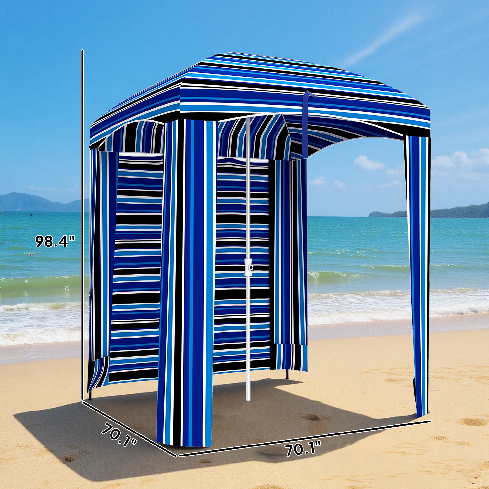 5.9' x 5.9' Portable Beach Umbrella, Ruffled Outdoor Cabana with Walls, Vents, Sandbags, Carry Bag, Blue Stripe