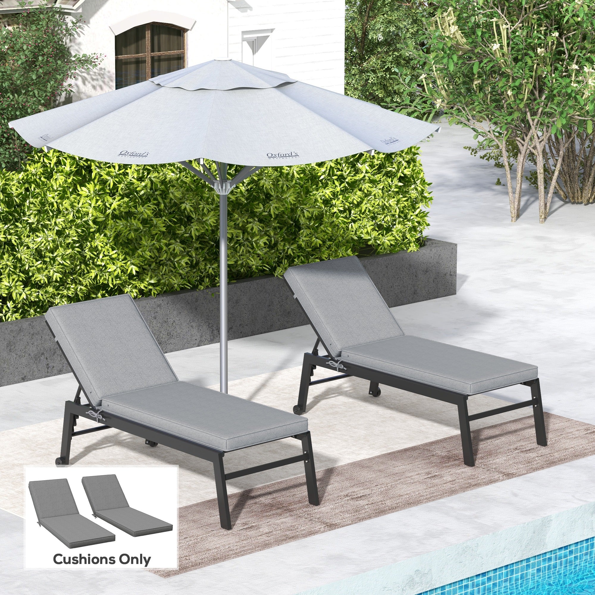 Chaise Lounge Cushions Outdoor Set of 2, Fade Resistant, 72 x 21 x 3 In Sun Lounger Replacement Cushions, Patio Lounge Chair Pads with Removable Cover for Pool, Beach, Deck, Lawn, Gray