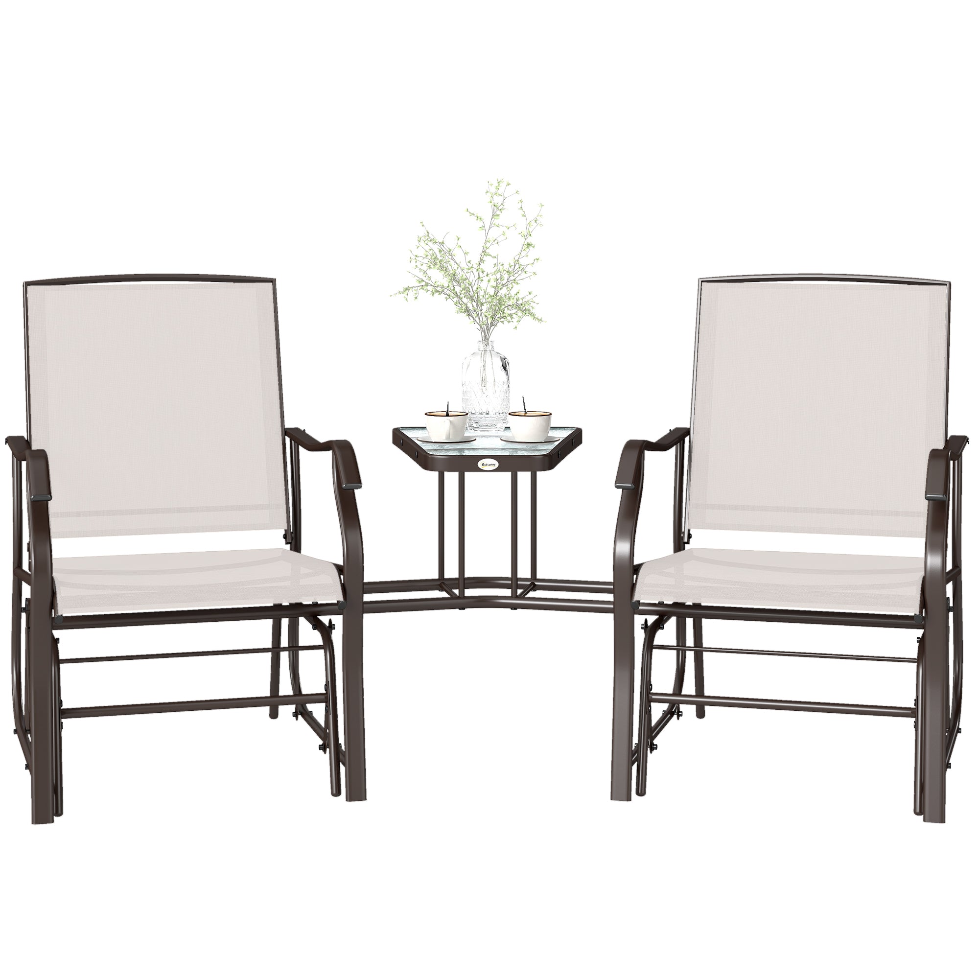 • Outdoor Glider Chairs with Coffee Table, Patio 2-Seat Rocking Chair Swing Loveseat with Breathable Sling for Backyard, Garden, and Porch, Beige