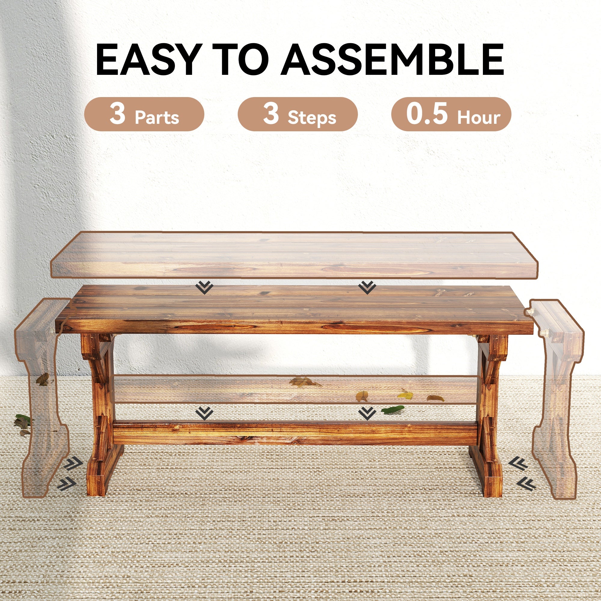 - Easy Assembly: All hardware and instructions are included. With only three main parts and simple steps, you can assemble this 44.9" x 15.7" x 18.1" patio bench in about 30 minutes and start enjoying it right away