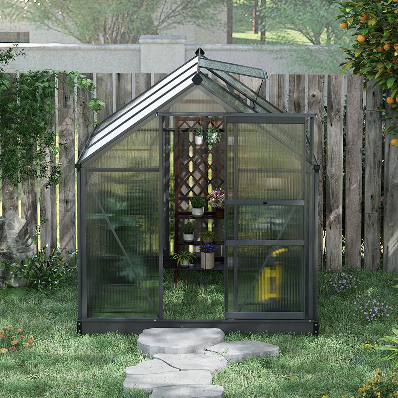 - Polycarbonate Greenhouse: Elevating humidity with superior insulation, transparent polycarbonate panels make our greenhouse ready for outside conditions. They allow in nourishing sunlight while still blocking scorching UV.
