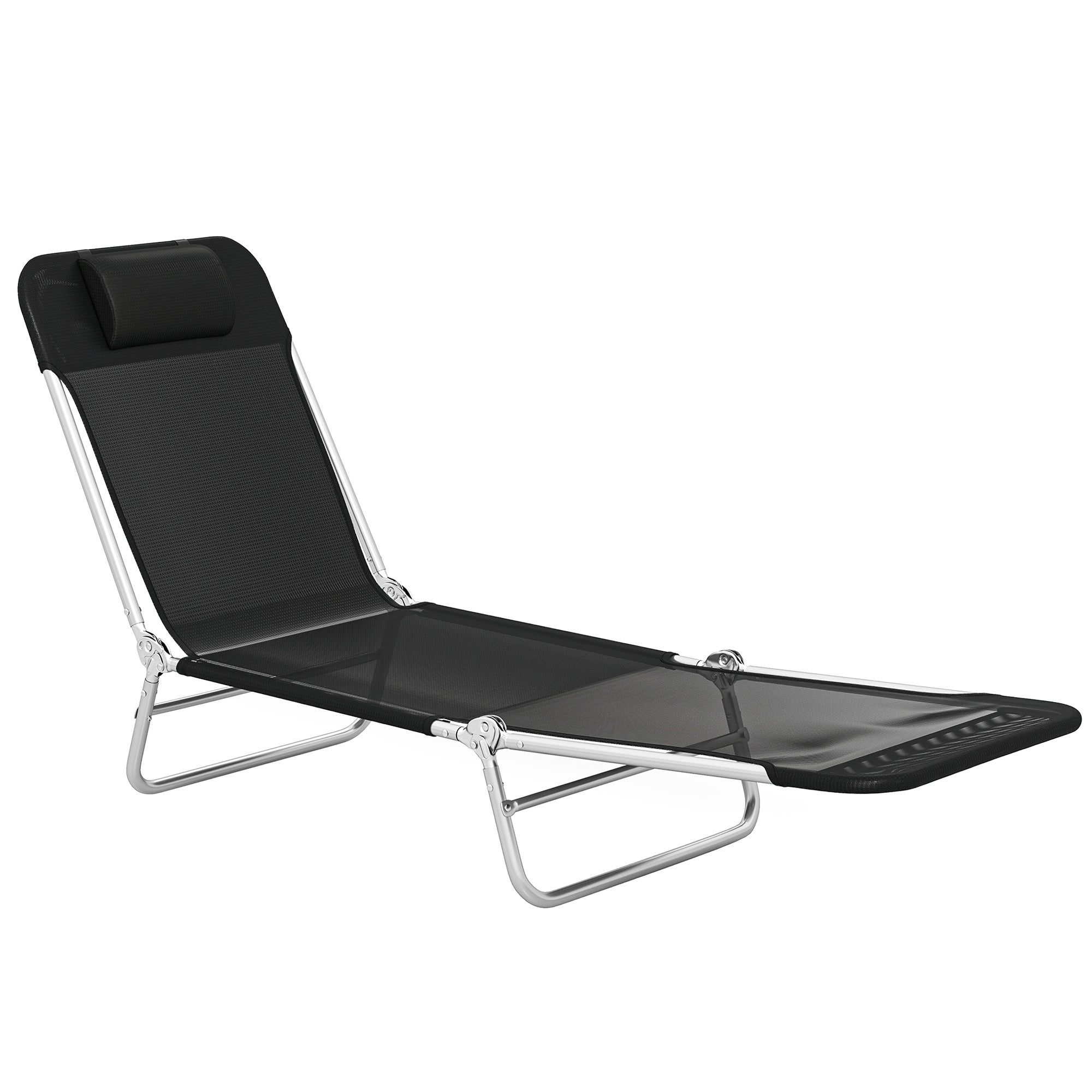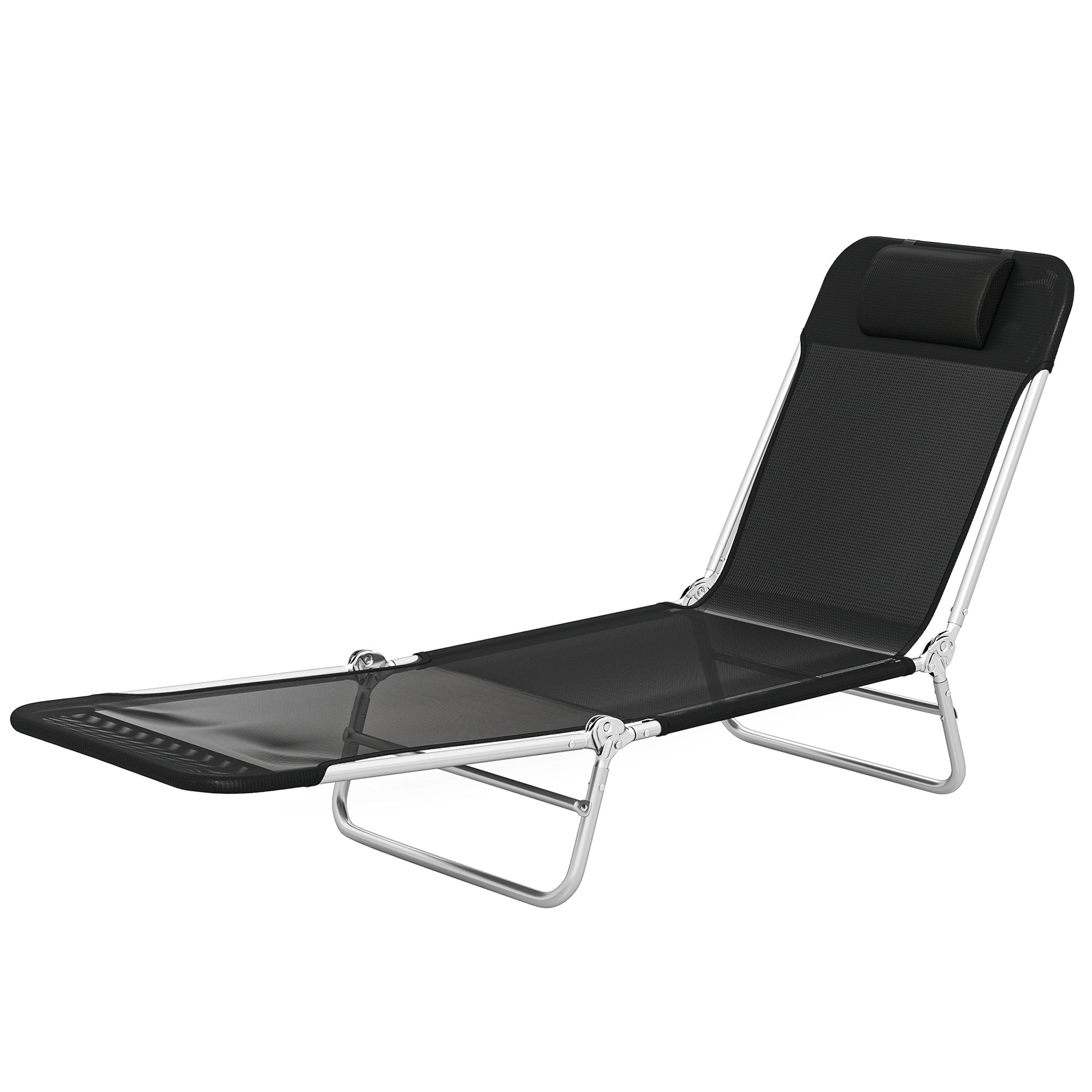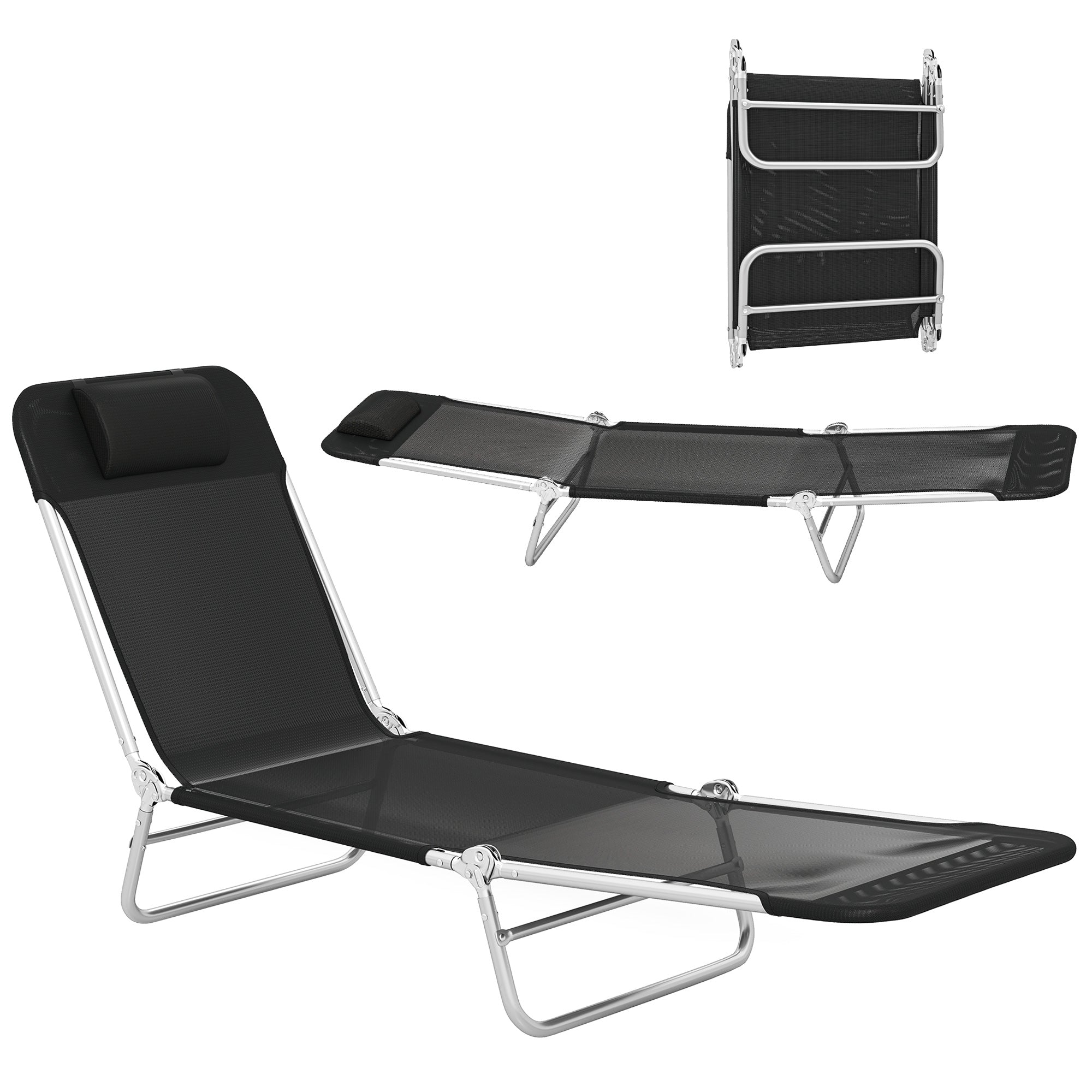 Folding Chaise Lounge Chair with Reclining Back, Breathable Mesh Seat, Headrest for Beach, Yard, Patio, Black