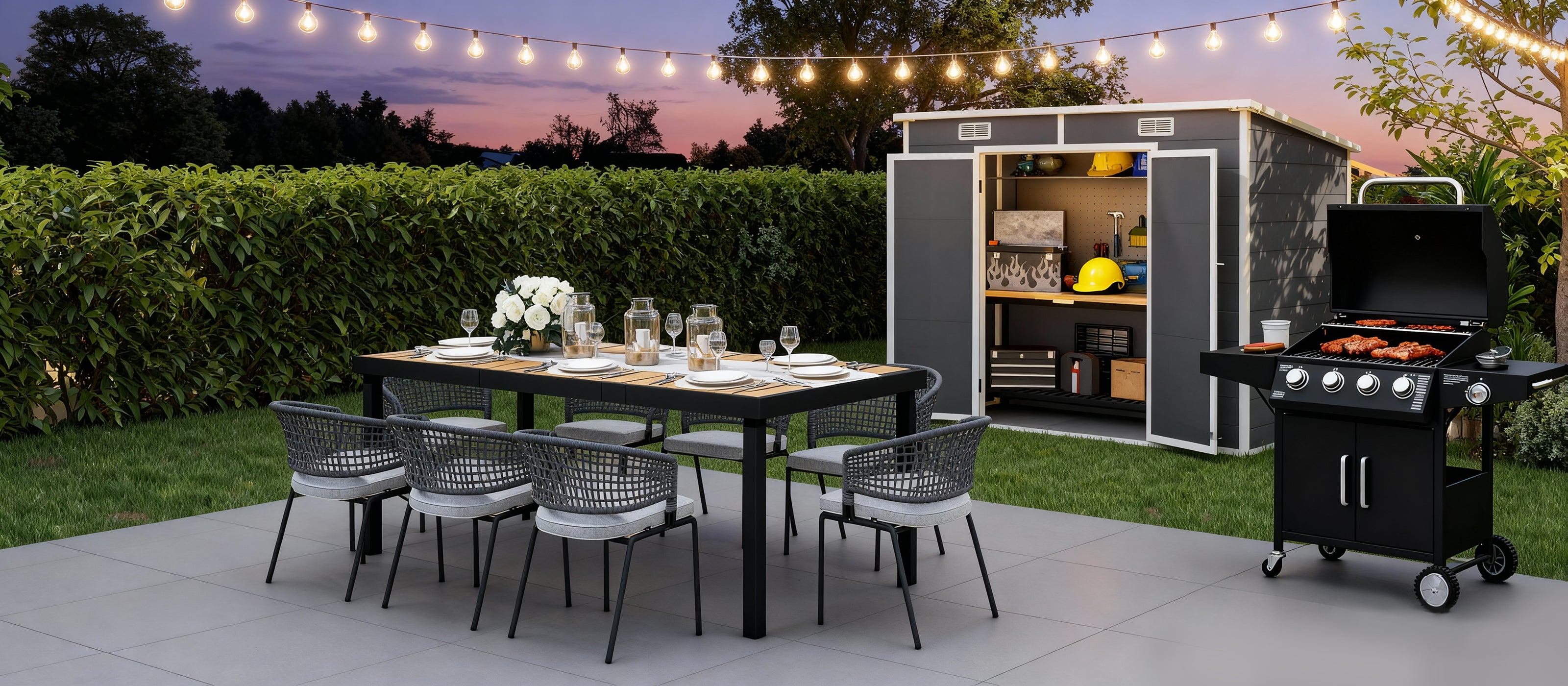 Transform your garden into a Mediterranean retreat with elegant furniture and chic accessories