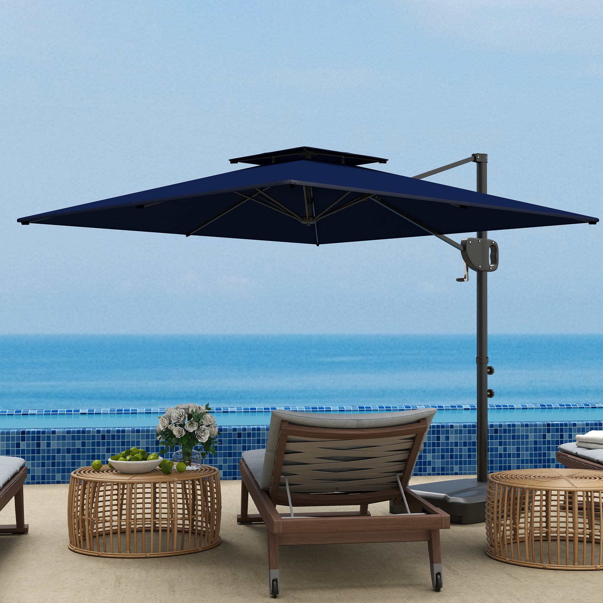 - Handy Crank System: Easily and quickly open and close the cantilever patio umbrella using the handle on the powder-coated pole