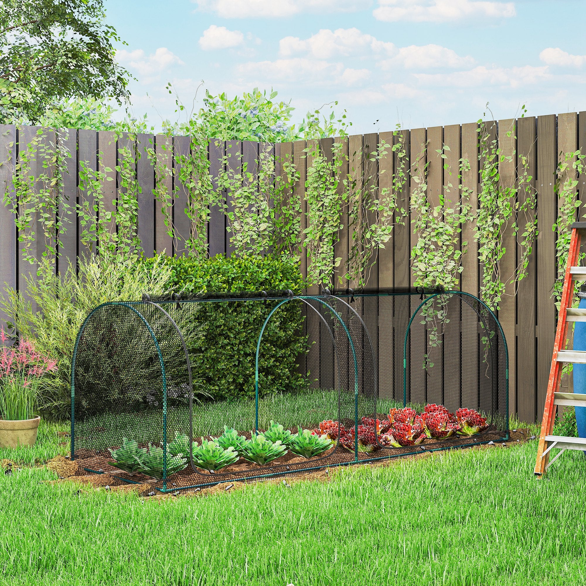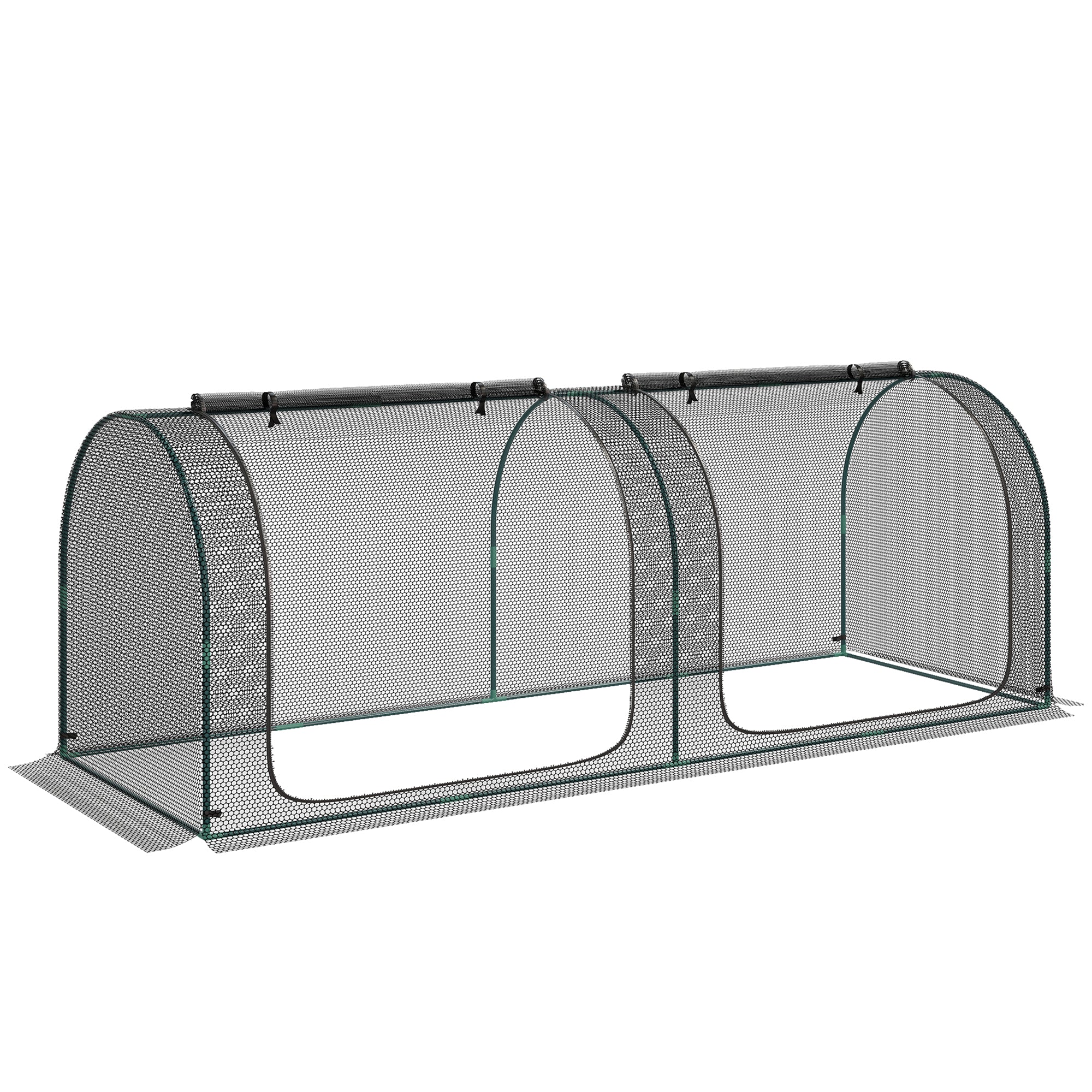 • 8' x 3' Crop Cage, Plant Protection Tent, with Two Zippered Doors and 4 Ground Stakes, for Garden, Yard, Lawn, Black