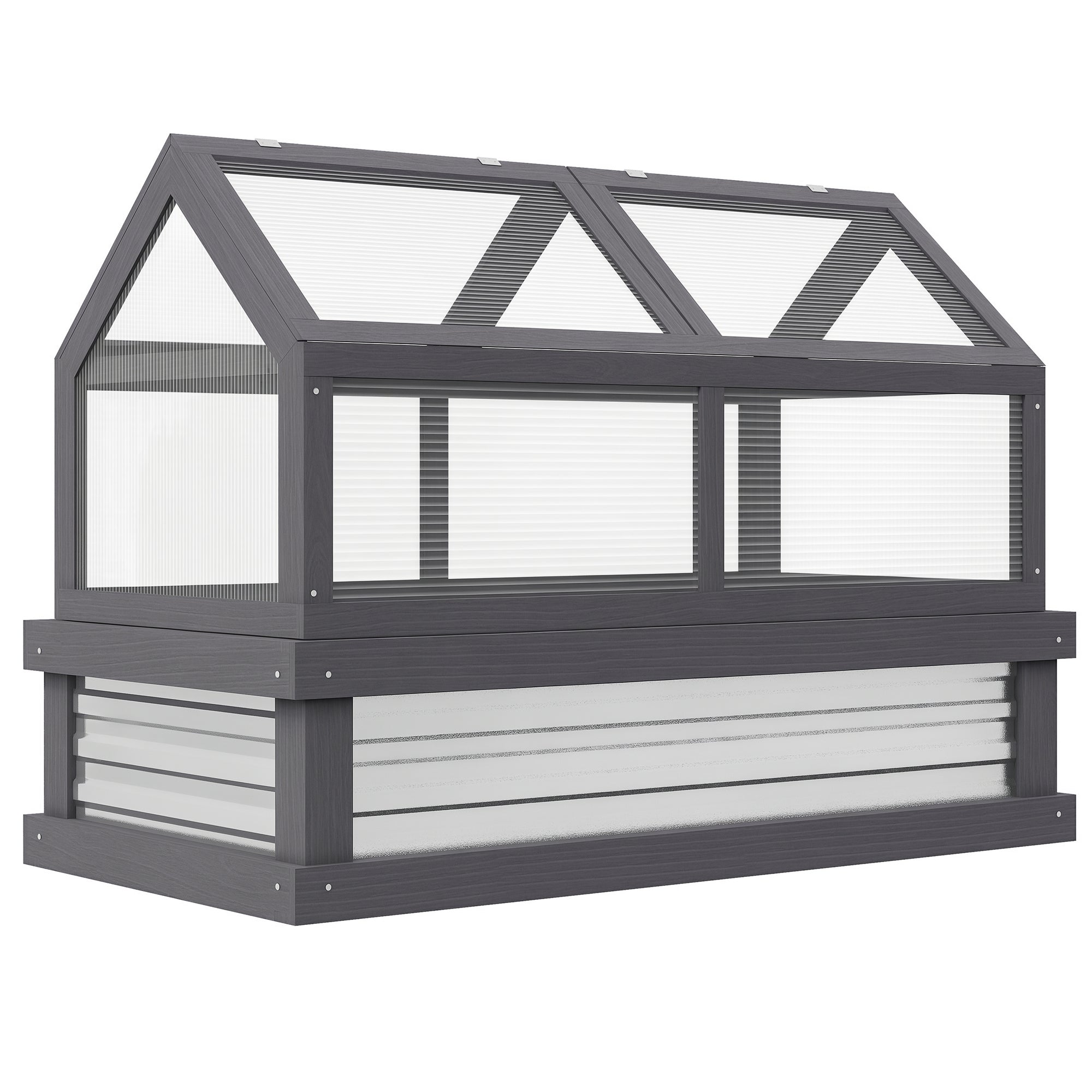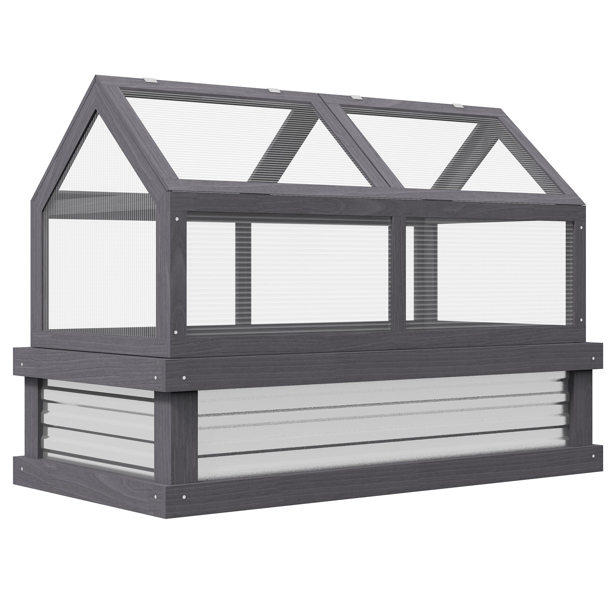 • Wooden Cold Frame Greenhouse, Raised Garden Bed with Polycarbonate Greenhouse, Flower Planter Protection, 48" x 24" x 32", Grey