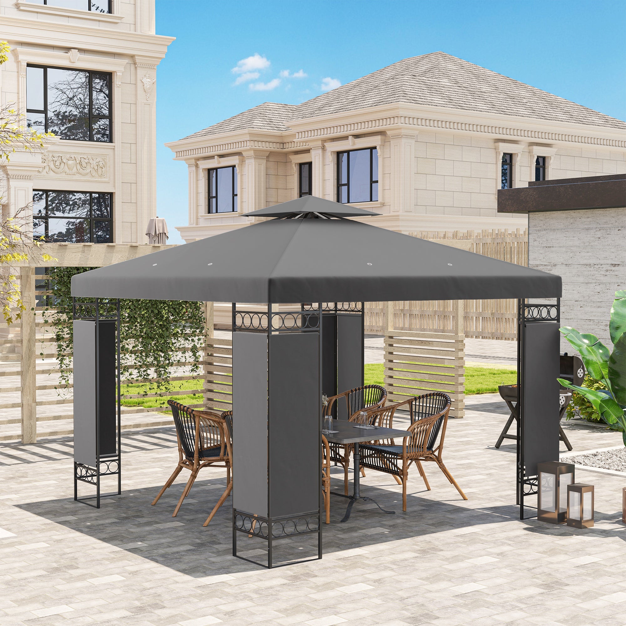 - Spacious and Private: This spacious 10-person metal gazebo provides ample room for all your guests. Plus, fabric screen panels create a more private, intimate setting—great for relaxing dinners, or parties