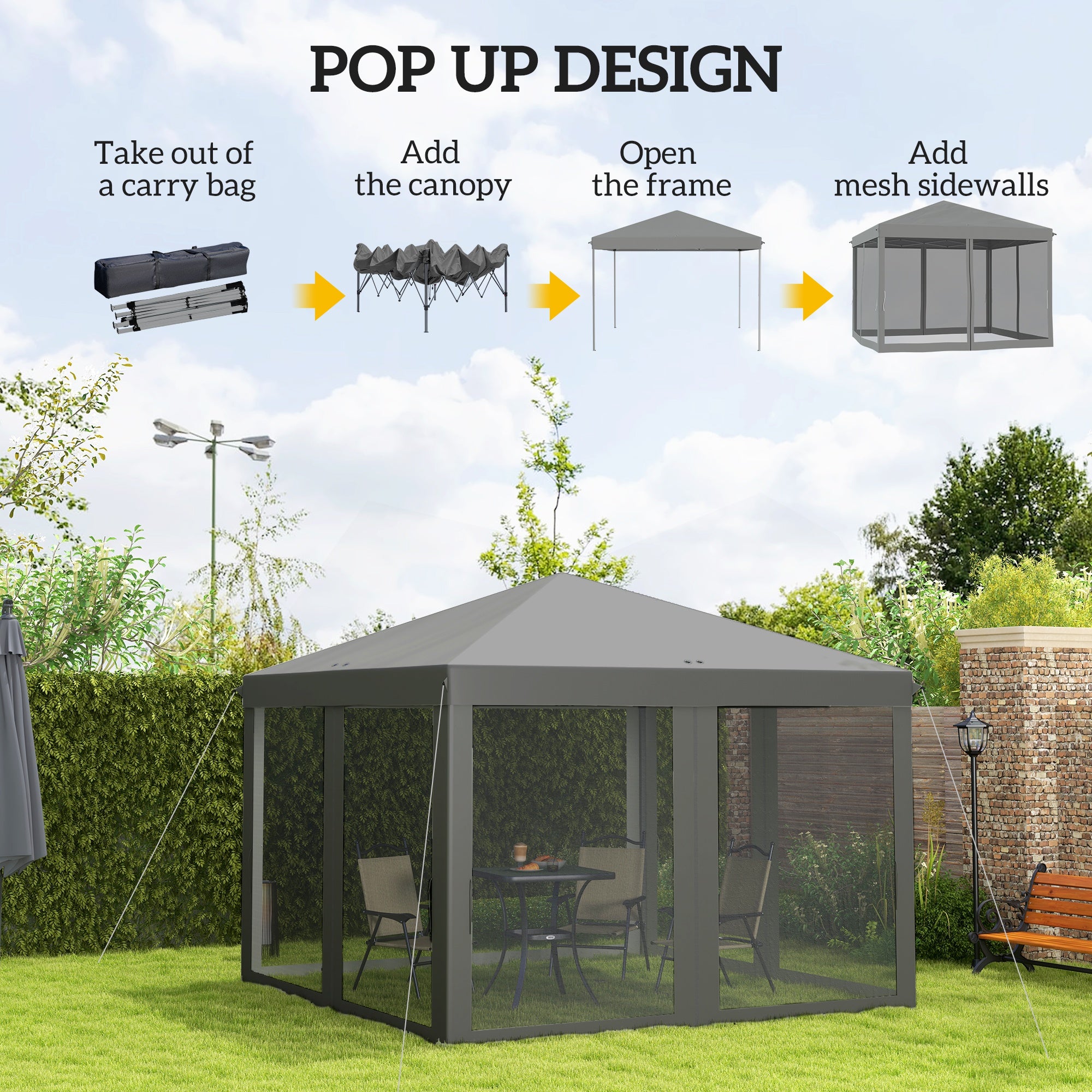 • 10' x 10' Pop Up Canopy Tent Gazebo, Foldable Canopy Tent with Zipper Mesh Sidewalls and Carry Bag, Easy Setup Screen Shelter for Backyard Patio Outdoor, Light Grey