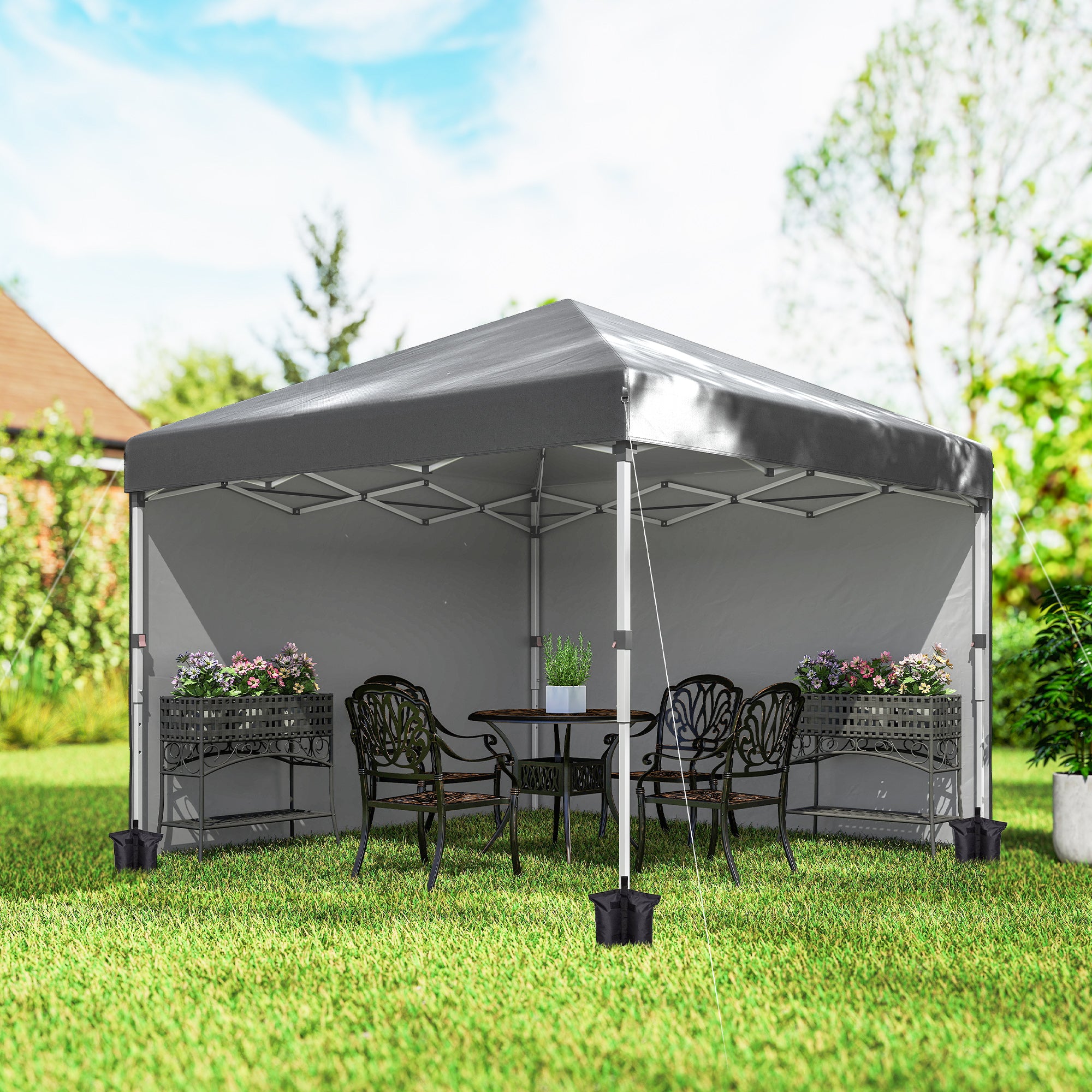 • 10' x 10' Pop Up Canopy Tent with Removable Sidewalls, Instant Shelter with Portable Roller Bag, 4 Sand Bags, Adjustable Height for Outdoor, Garden, Patio, Dark Grey