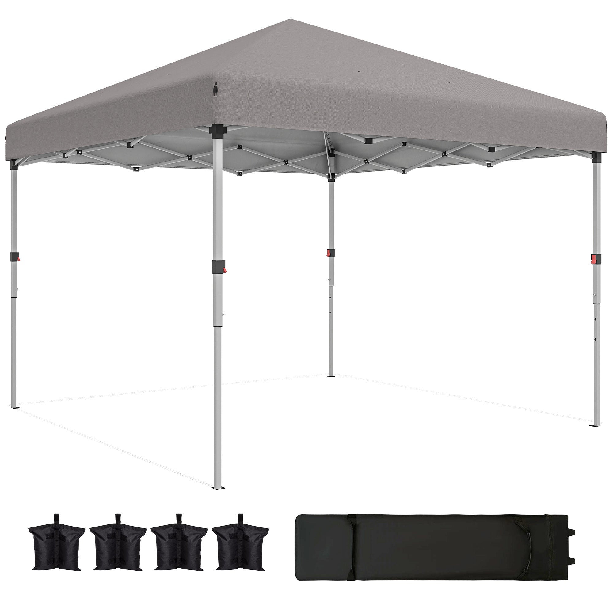 • 10' x 10' Pop Up Canopy Tent with Removable Sidewalls, Instant Shelter with Portable Roller Bag, 4 Sand Bags, Adjustable Height for Outdoor, Garden, Patio, Light Grey