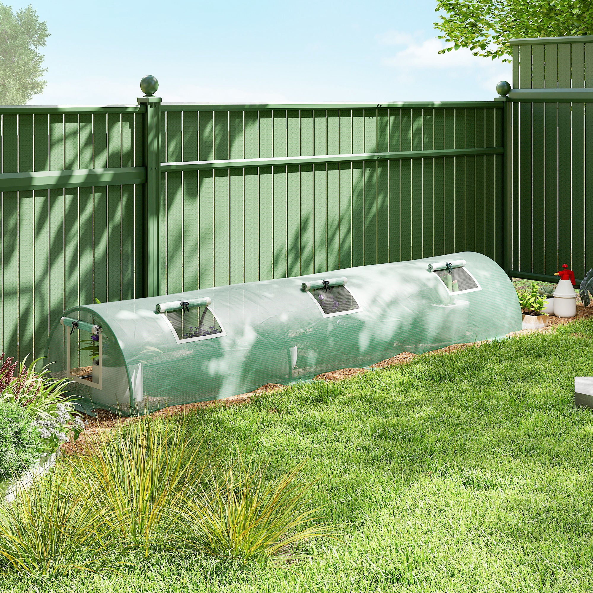 • 10' x 3' x 2' Portable Mini Greenhouse, Tunnel Growing Tent Plants Flower Warm House with 5 Mesh Windows and Steel Frame, for Garden, Patio, Backyard, Green