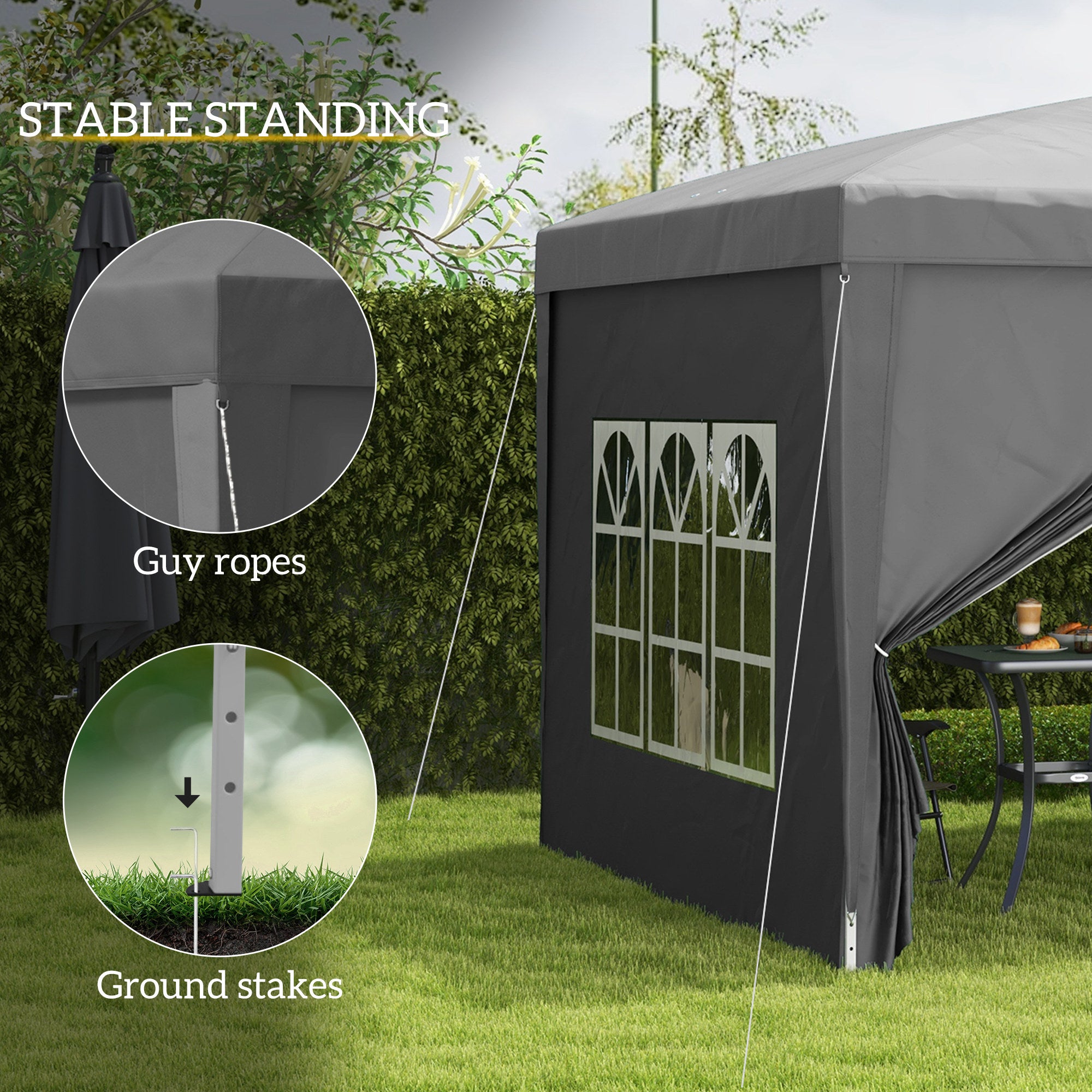 Outsunny's easy and reliable 10x10 pop up canopy is the perfect addition to any outdoor event to protect you from the weather and have a great time. The easy up frame makes transportation simple and the removable sidewalls let you organize into a bigger party tent by tying them together. Featuring UV protection, heat reduction, and water and wind resistance, the screened canopy is perfect for any outdoor occasion such as camping trips, family parties, picnics, sports events and more.
