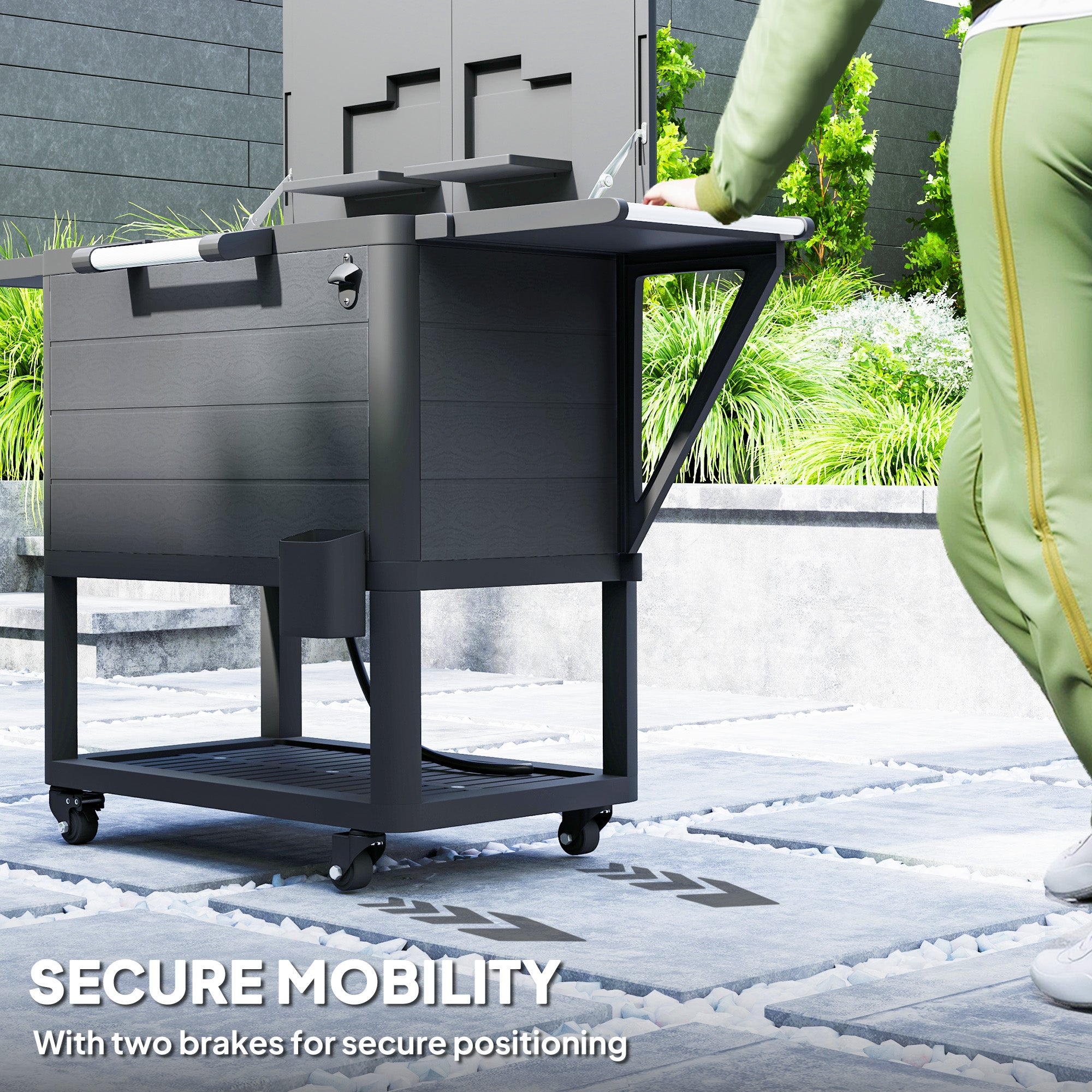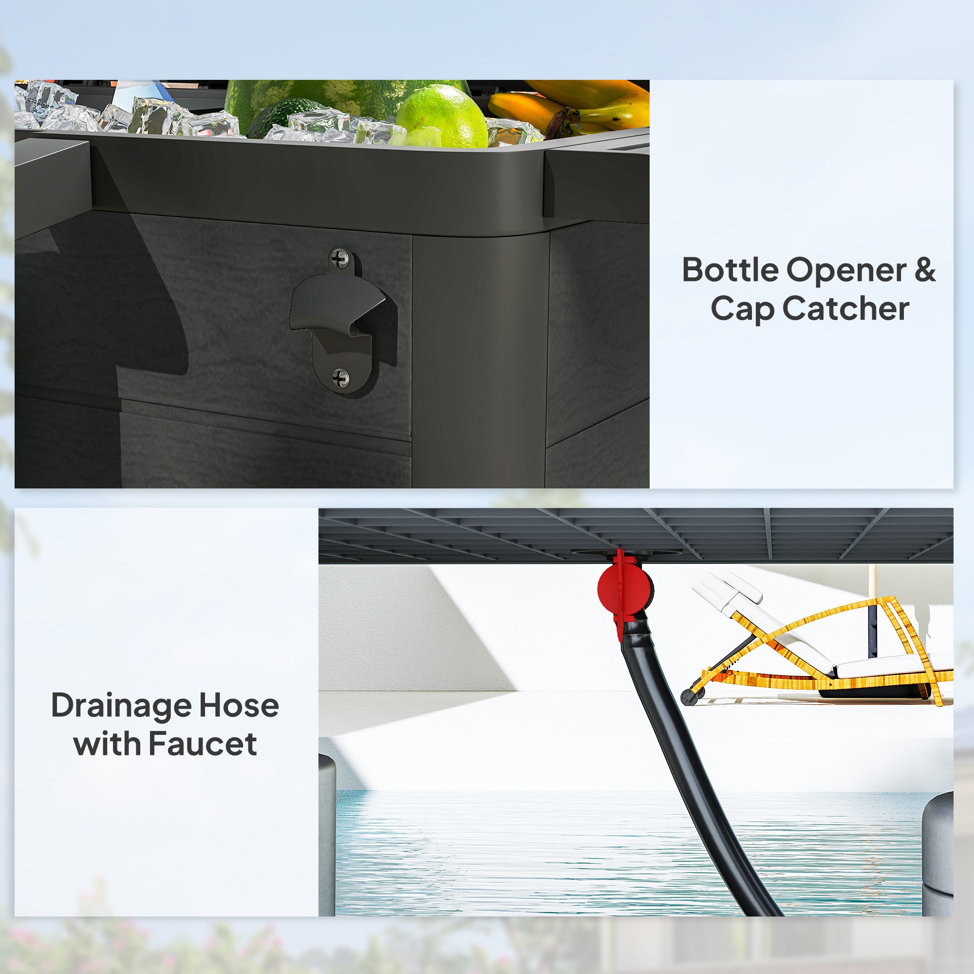 - User-friendly Design: Designed with four wheels and side handles, this cooler cart is effortless to transport, while two lockable casters provide stability when needed. A built-in bottle opener, cap collector, and a front towel rack for added convenience