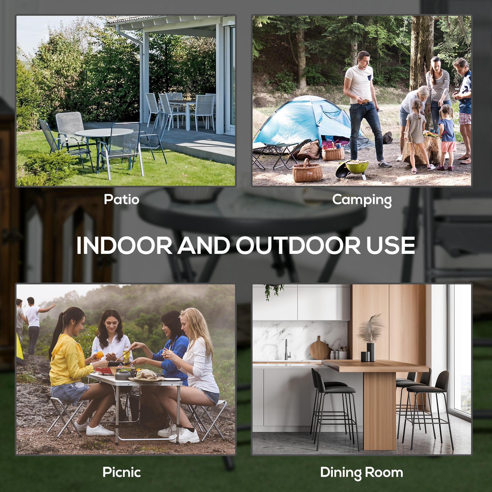 - Steel Frame: Powder coated for extra strength for a stable outdoor table.