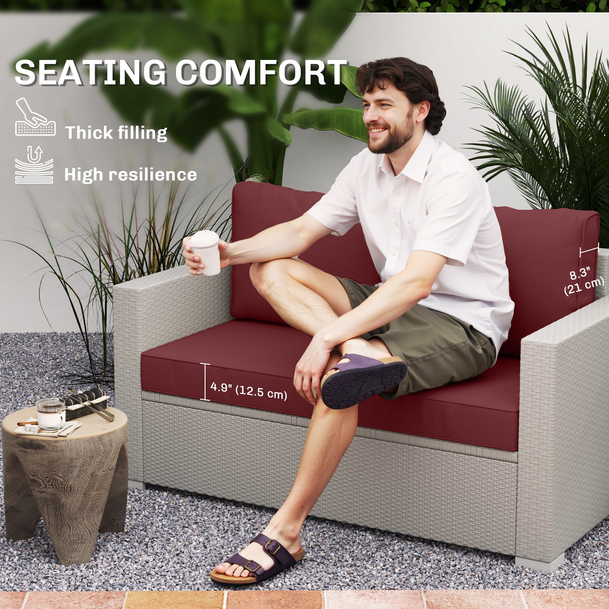 • 2 Seater Outdoor Seat Cushions with Backrest, Loveseat Double Sofa Outdoor Furniture Cushions, Fade-Resistant Replacement Patio Cushions for Indoor and Outdoor, Wine Red