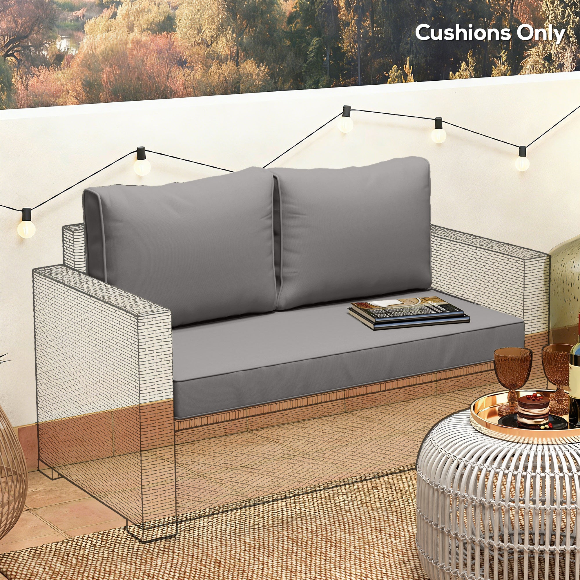 The Outsunny patio cushion set revitalizes your garden seating. It includes a seat cushion and 2 back cushions, all crafted with thick, soft filling for exceptional comfort. The fabric covers are soft, smooth, and resistant to fading, splashes, and light stains. The outdoor seat cushions are designed for indoor and outdoor use, with removable, machine-washable covers and zippers. Just unzip, remove, and wash for an easy refresh.