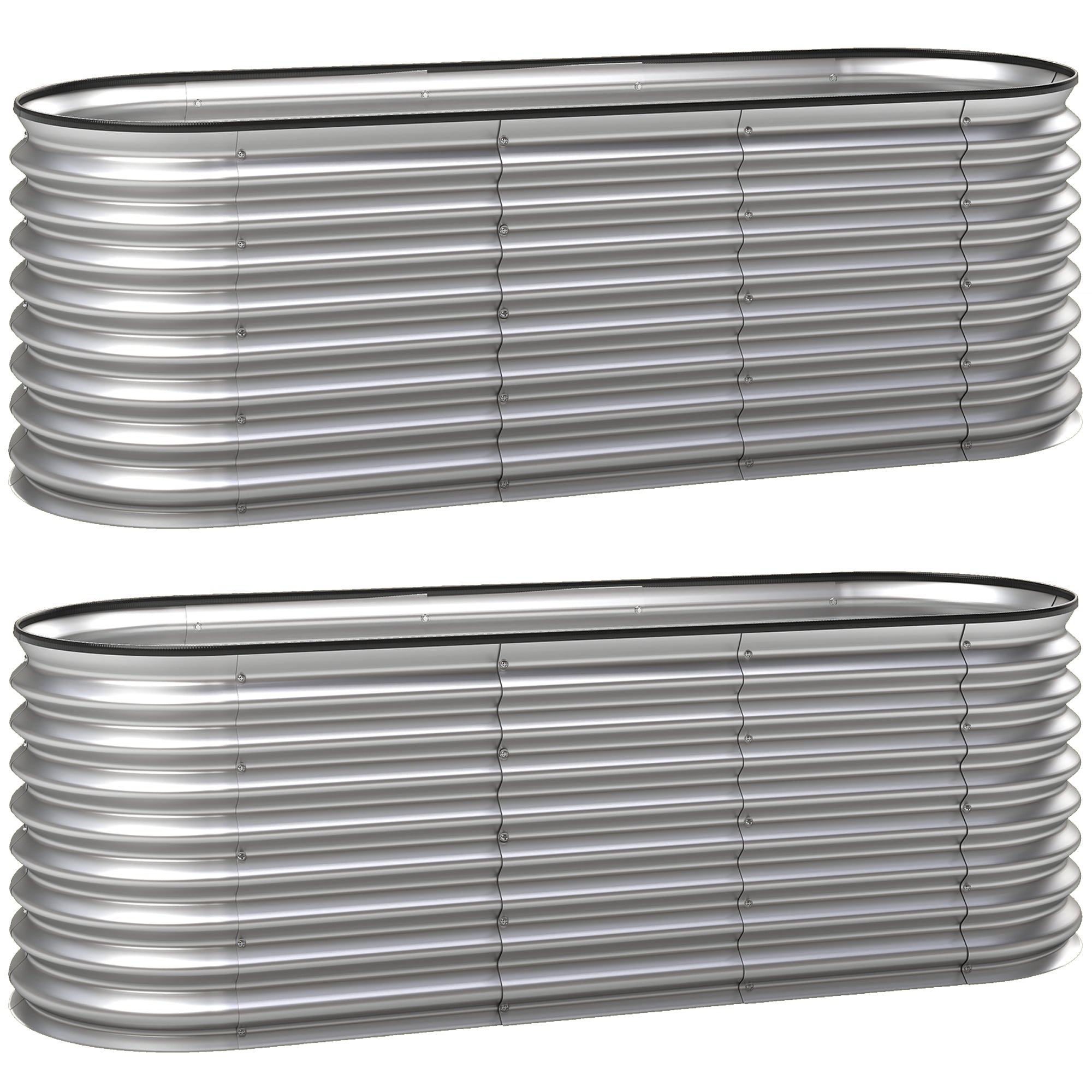 • 2Pcs Galvanized Raised Garden Bed, 6 x 2 x 2 ft Modular Metal Garden Beds with Rubber Strip Edging, Oval Outdoor Planter Box for Vegetables, Flowers, Herbs, Silver