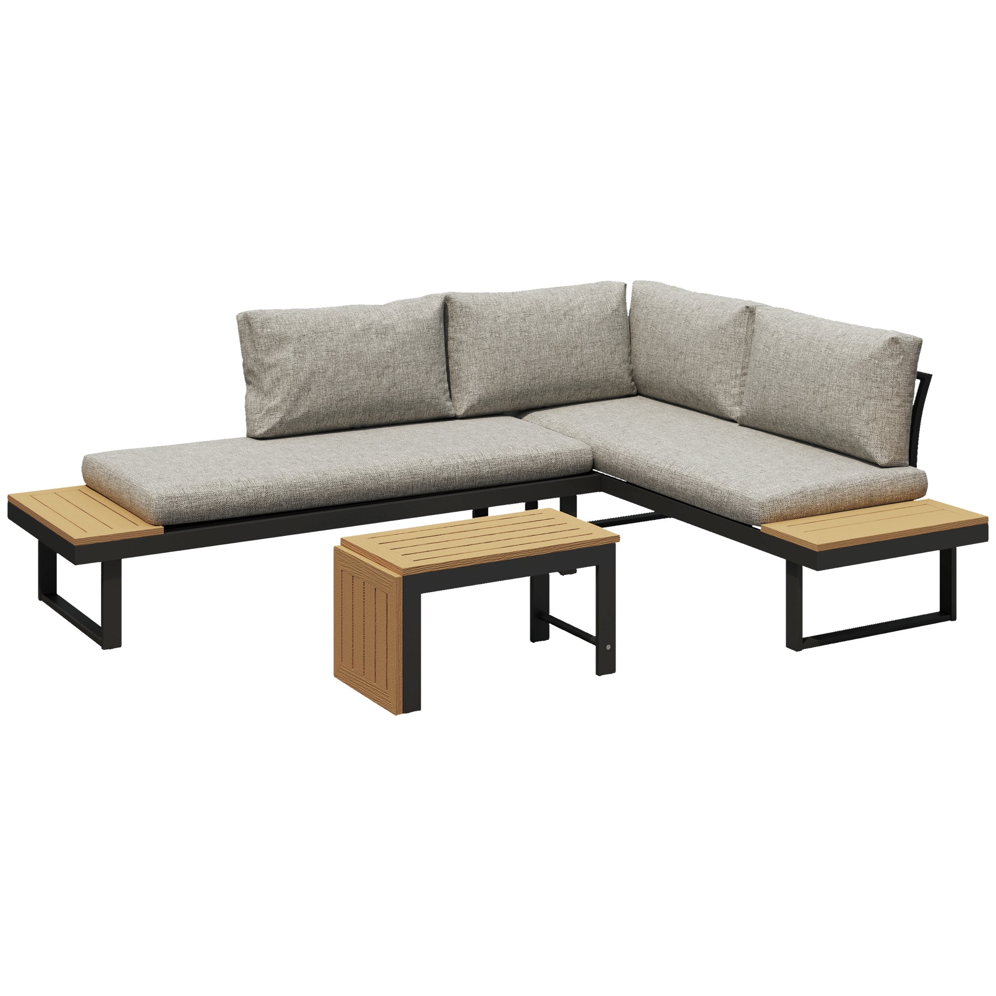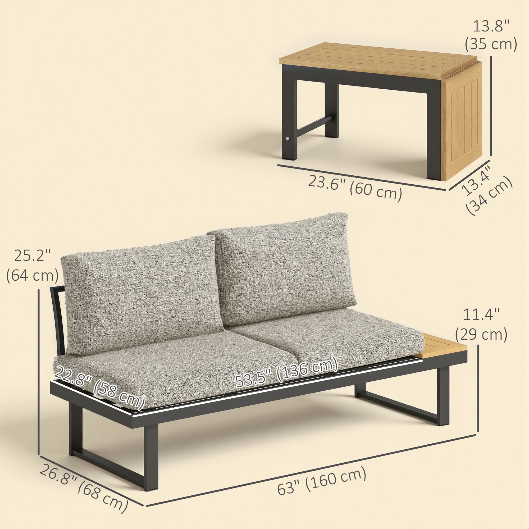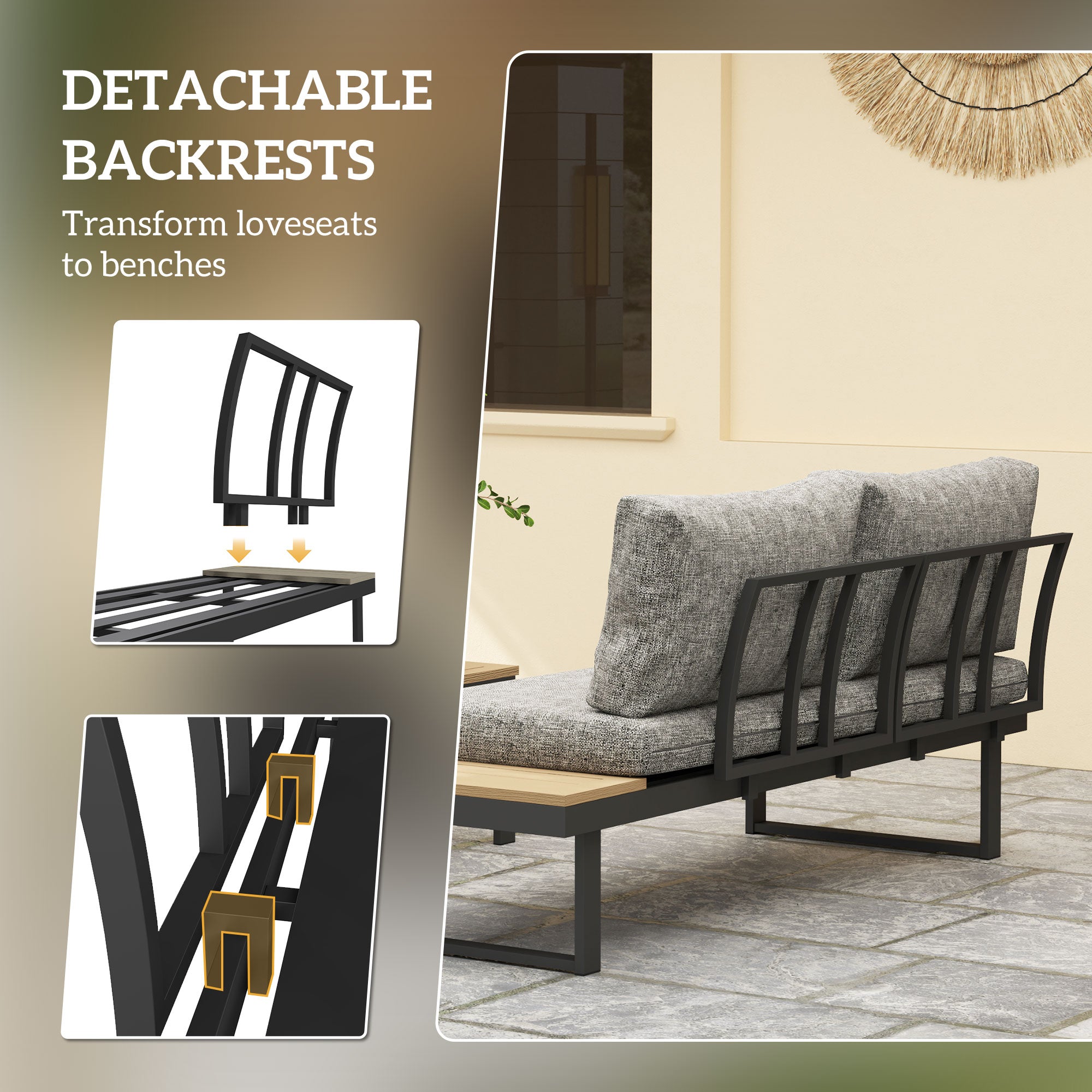 - Sectional Outdoor Furniture Set with Detachable Backrests: Two loveseats and a versatile coffee table offer flexible seating options, allowing you to customise your outdoor living area. Transform loveseats to benches by removing backs