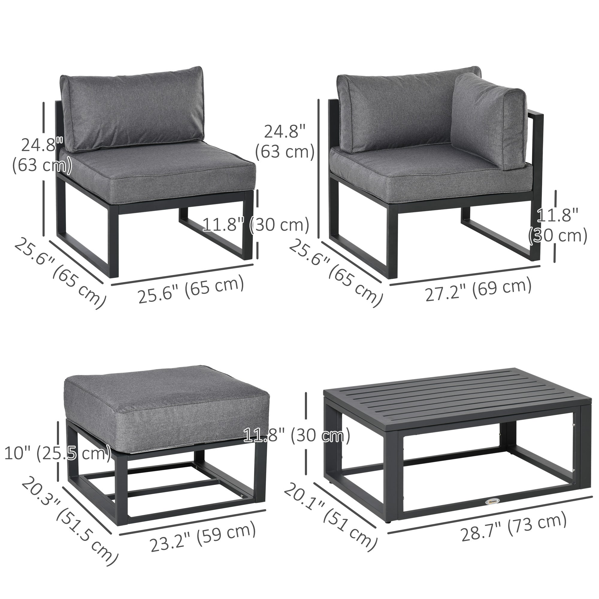 - Chair Dimension: (corner/middle) 27.2"/25.6" W x 25.6" D x 24.8" H (69/65 x 65 x 63 cm);