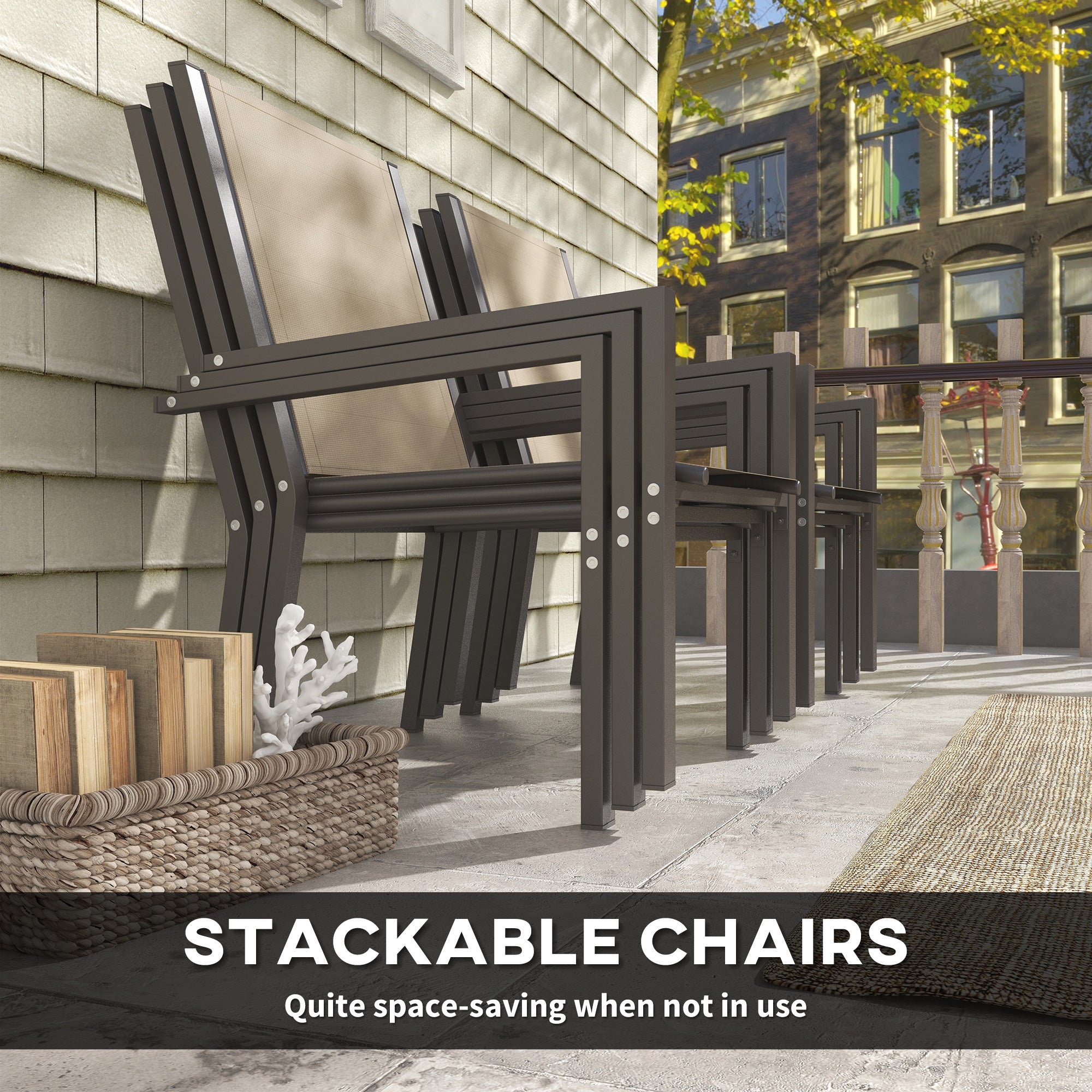 • 7 Piece Patio Dining Set, Outdoor Dining Table and 6 Stackable Chairs, Metal Patio Furniture Set with WPC Top, Breathable Mesh for Garden, Backyard, Poolside, Khaki
