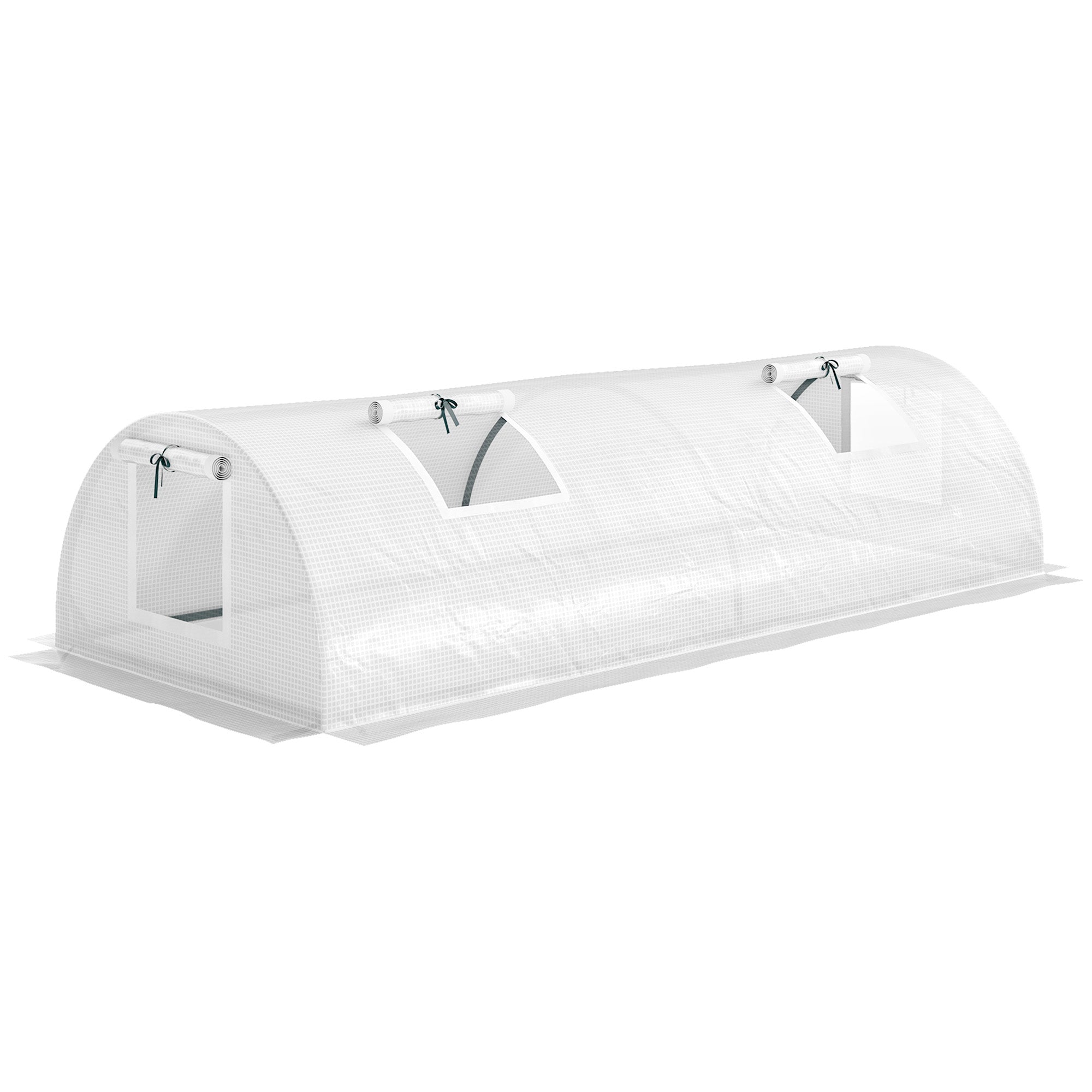 • 7' x 3' x 2' Portable Mini Greenhouse, Tunnel Growing Tent Plants Flower Warm House with 5 Mesh Windows and Steel Frame, for Garden, Patio, Backyard, White
