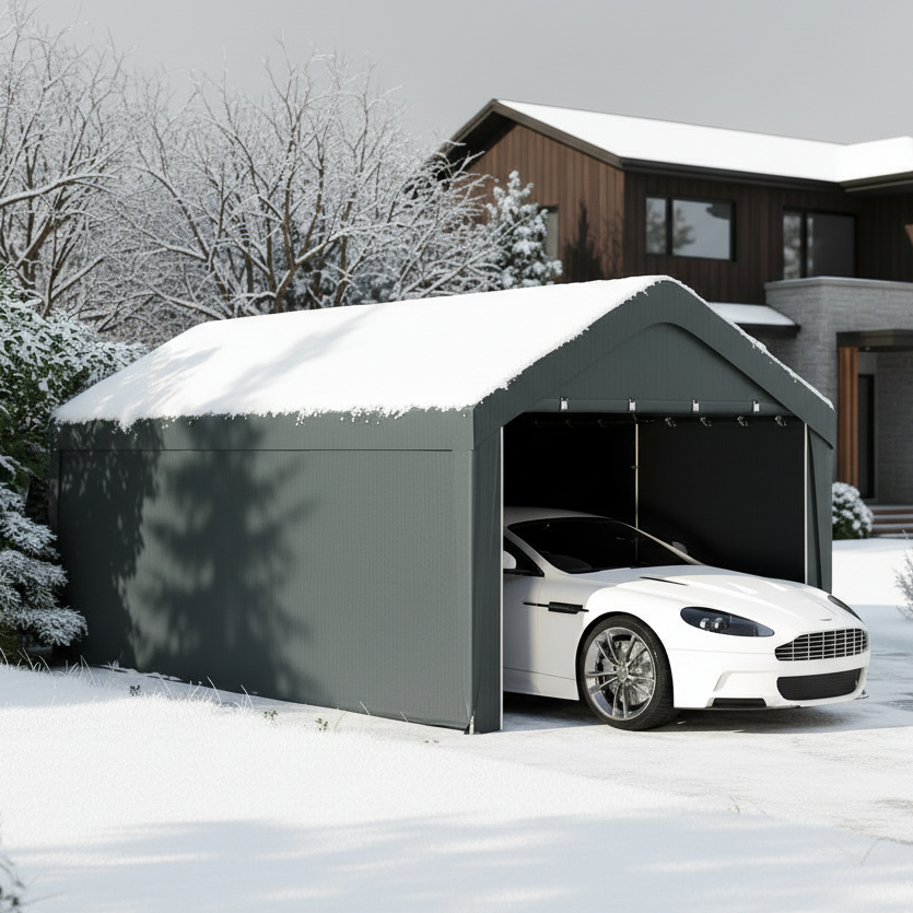 - Weather-Resistant PE Fabric: Made from PE fabric, this portable garage is water-resistant, UV-resistant, and windproof, offering all-season protection against the elements. Plus, the removable sidewalls make for easy cleaning and maintenance