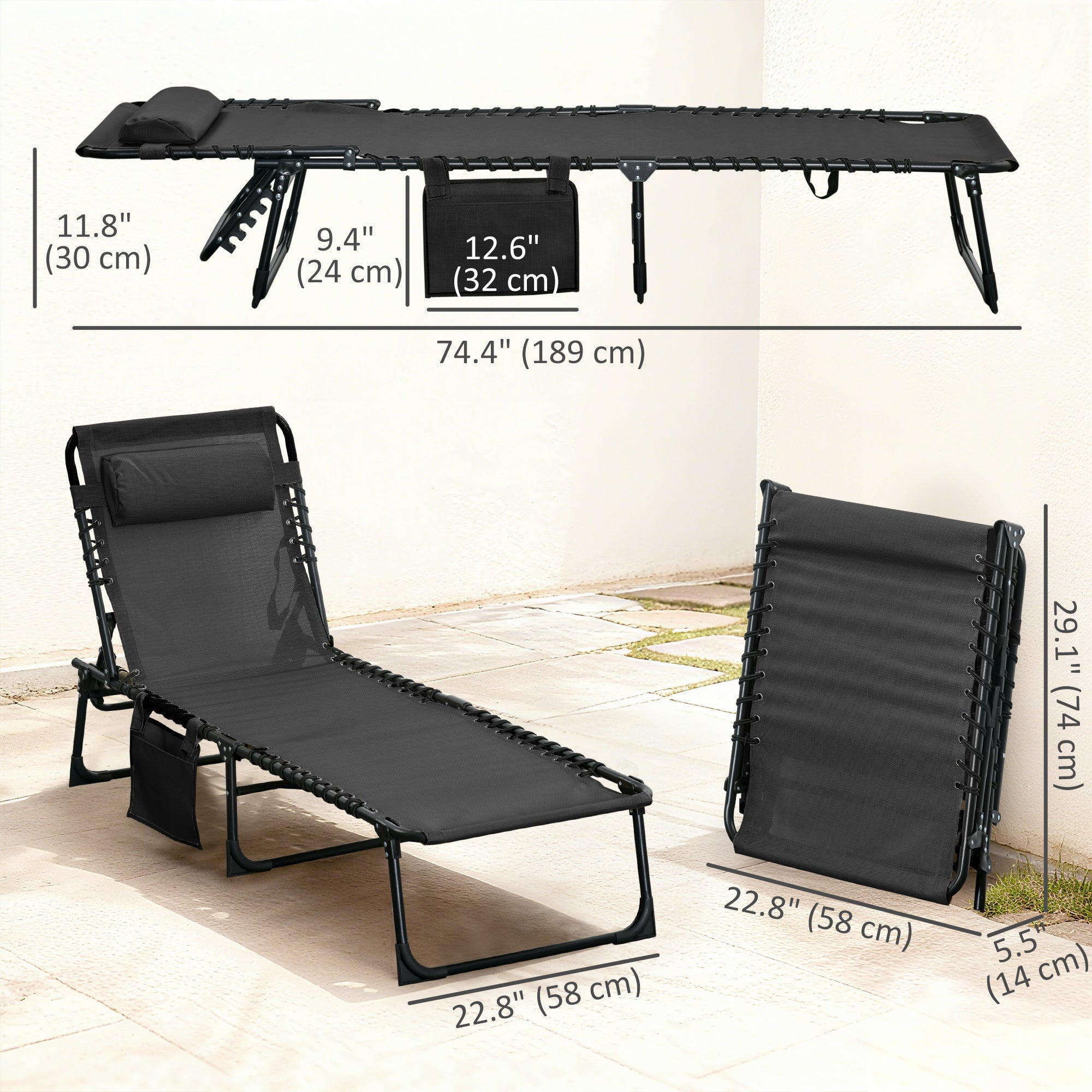 • Folding Lounge Chair, Reclining Tanning Chair, Portable Sun Lounger with Adjustable Backrest and Removable Pillow for Patio, Garden, Beach, Black