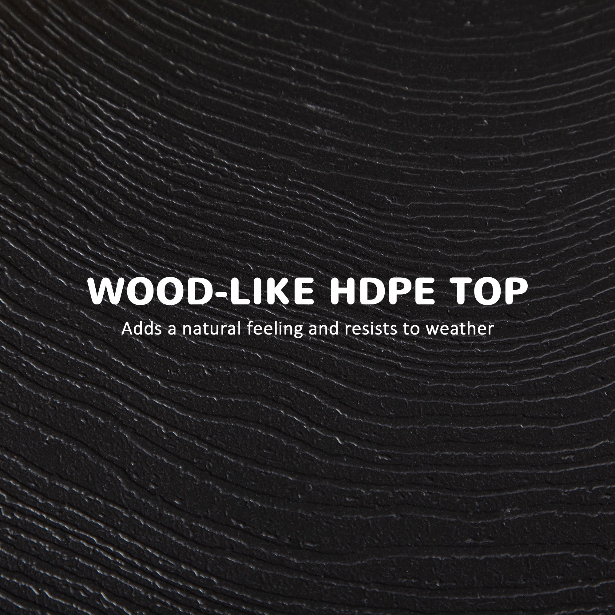 - Wood-effect HDPE tabletop is weather-resistant and highly decorative;