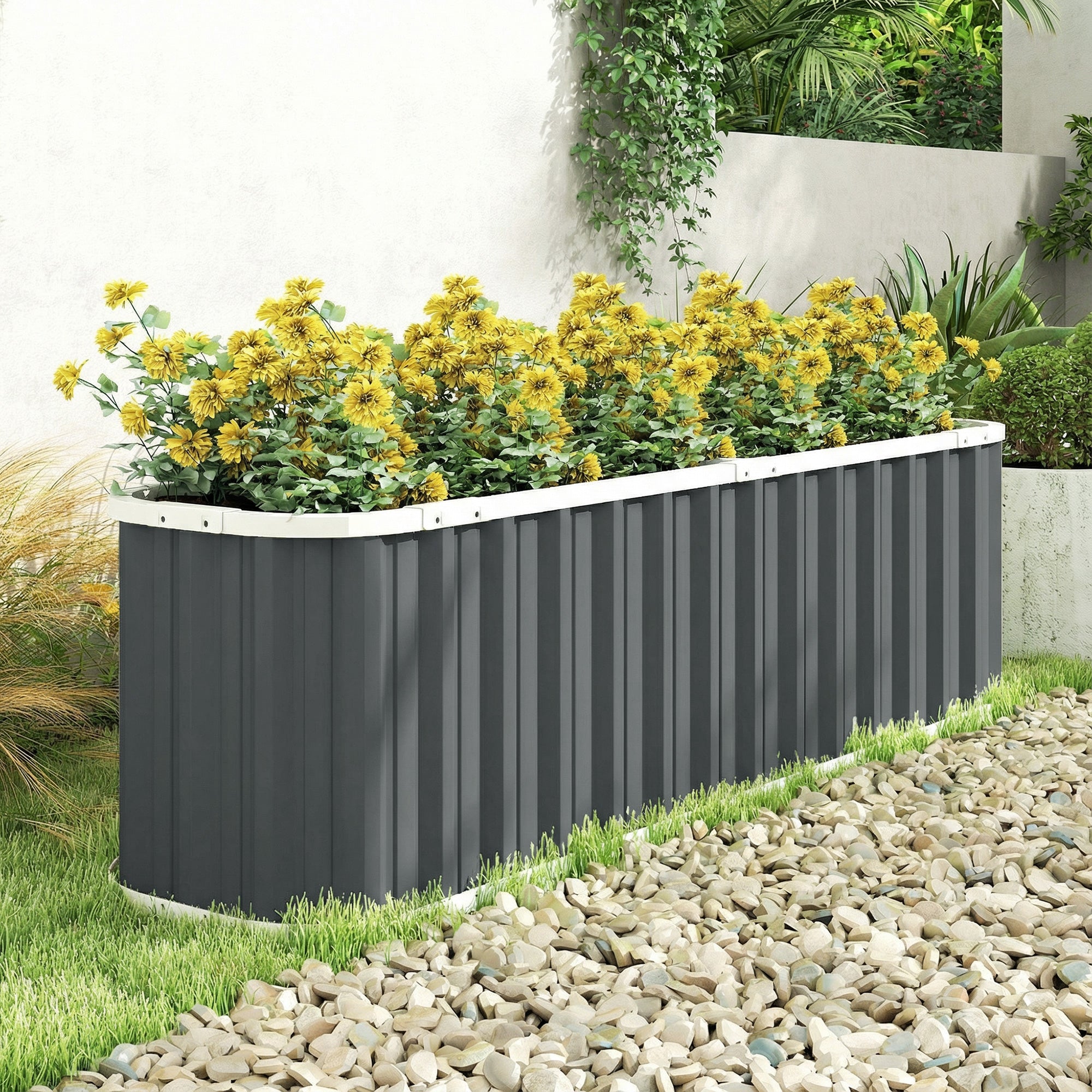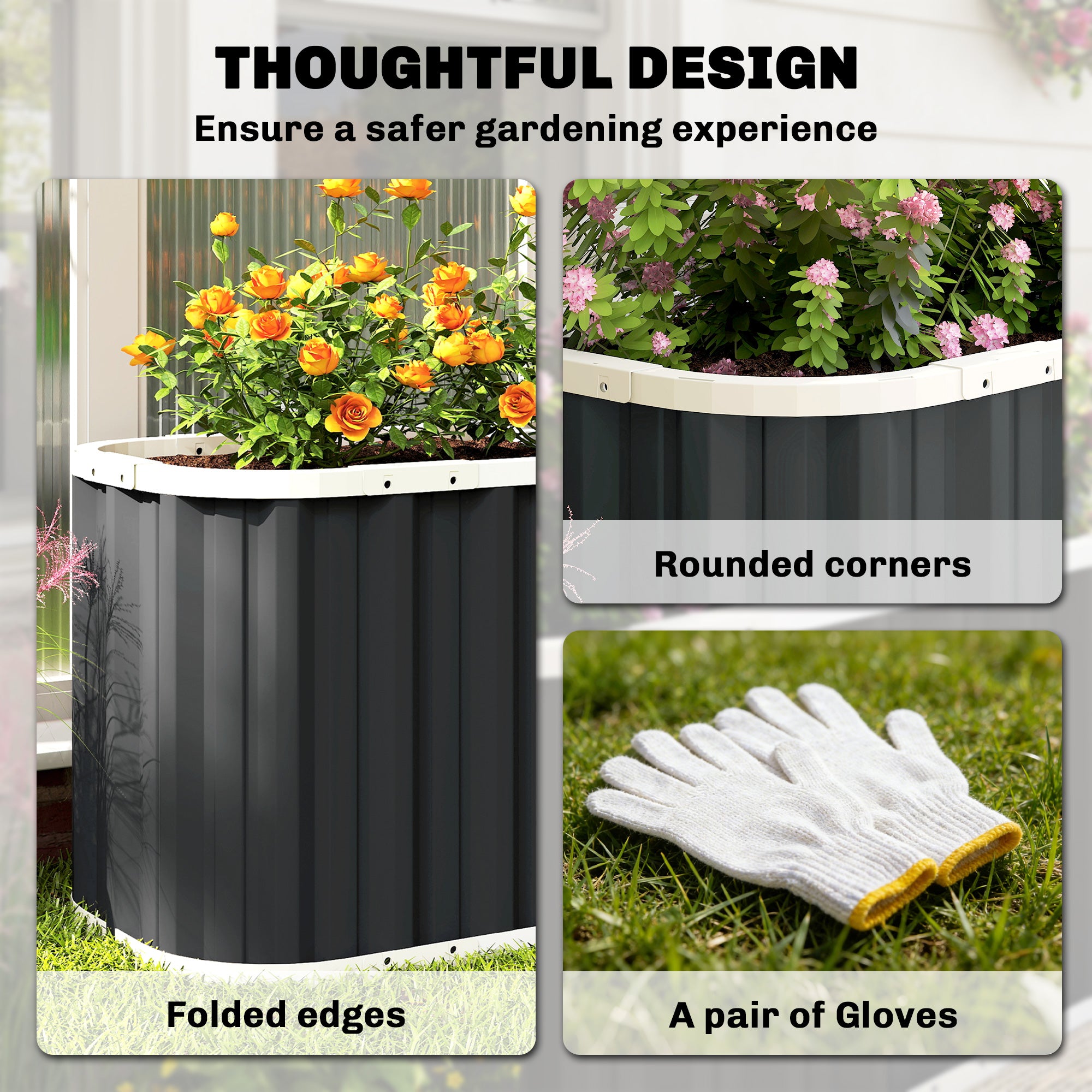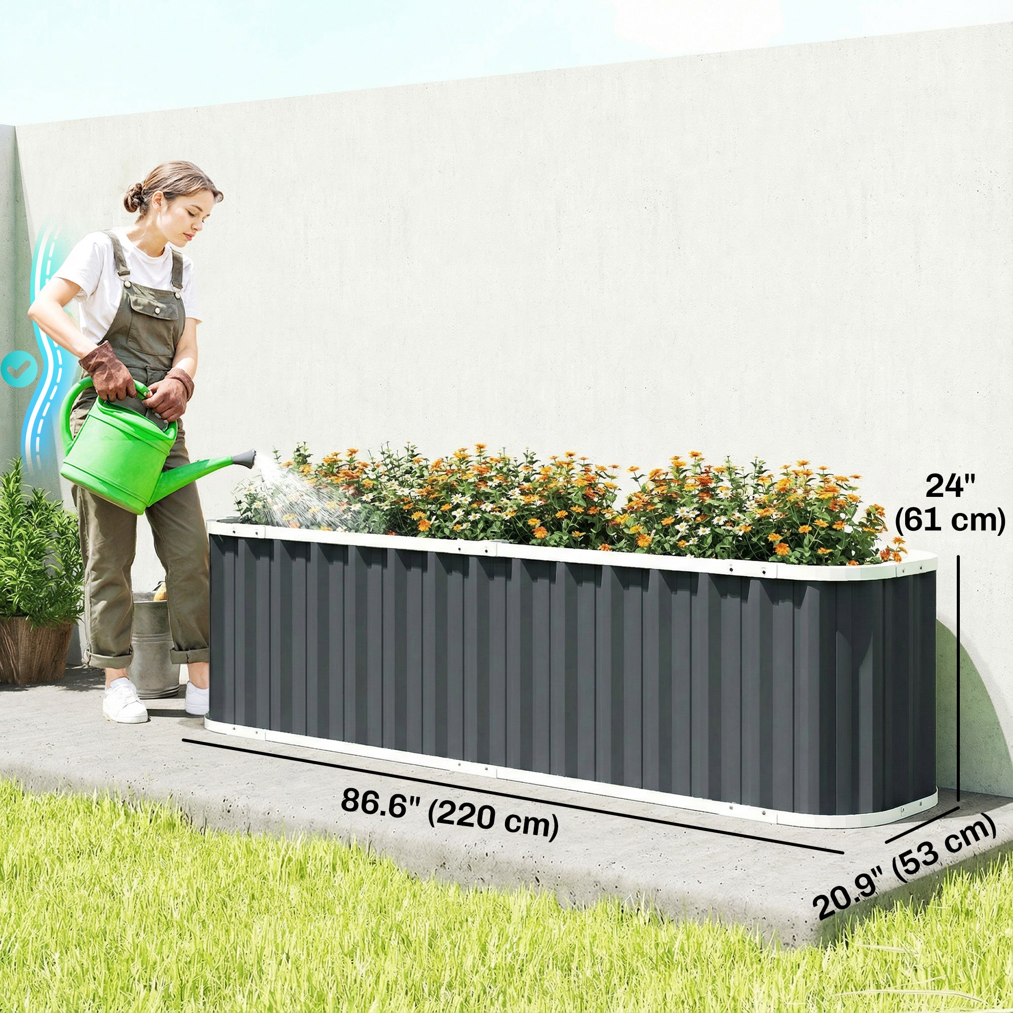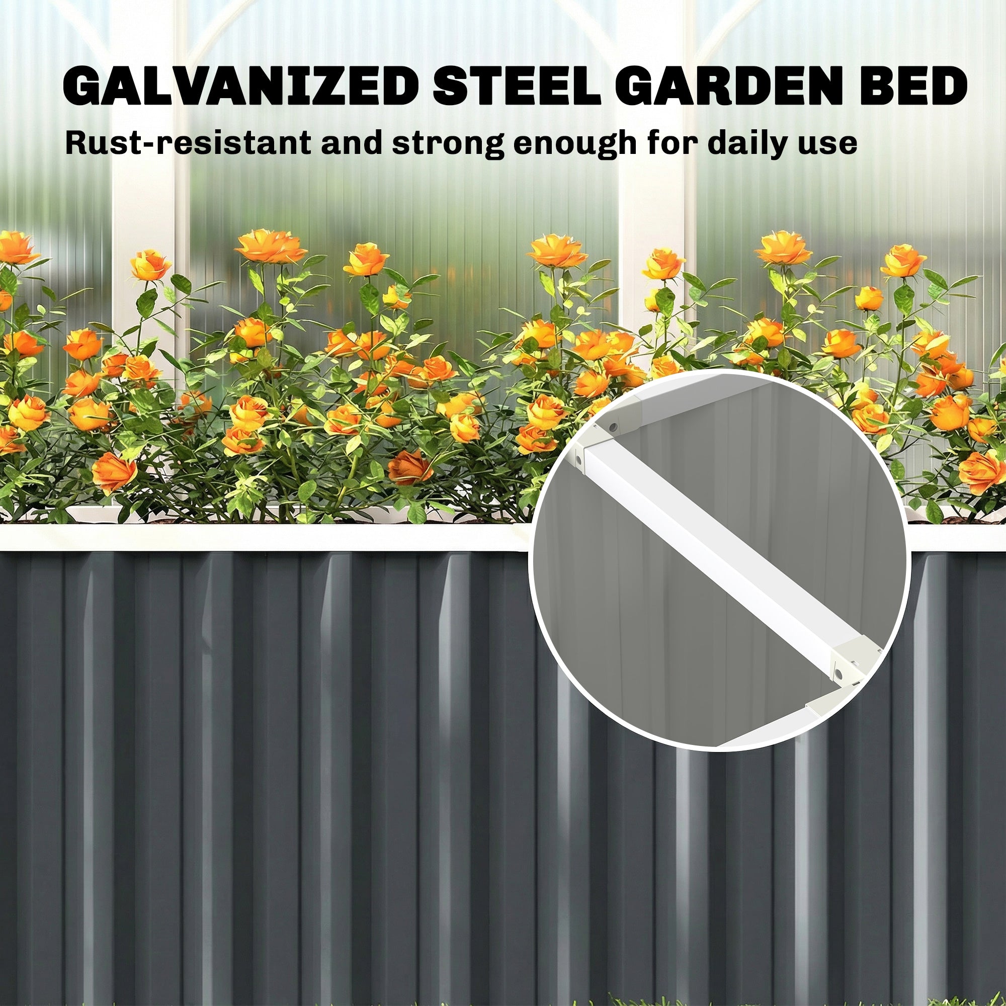 Enhance your outdoor growing space with the Outsunny Garden Bed. This 24" (61 cm) deep galvanized metal planter offers spacious room for herbs, flowers, and vegetables to develop strong roots. Reinforced steel panels provide lasting stability, while the open-bottom design improves drainage and soil access. Smooth and folded edges make gardening safer and easier for the whole family. Tool-free assembly saves you more time to enjoy your gardening moments!