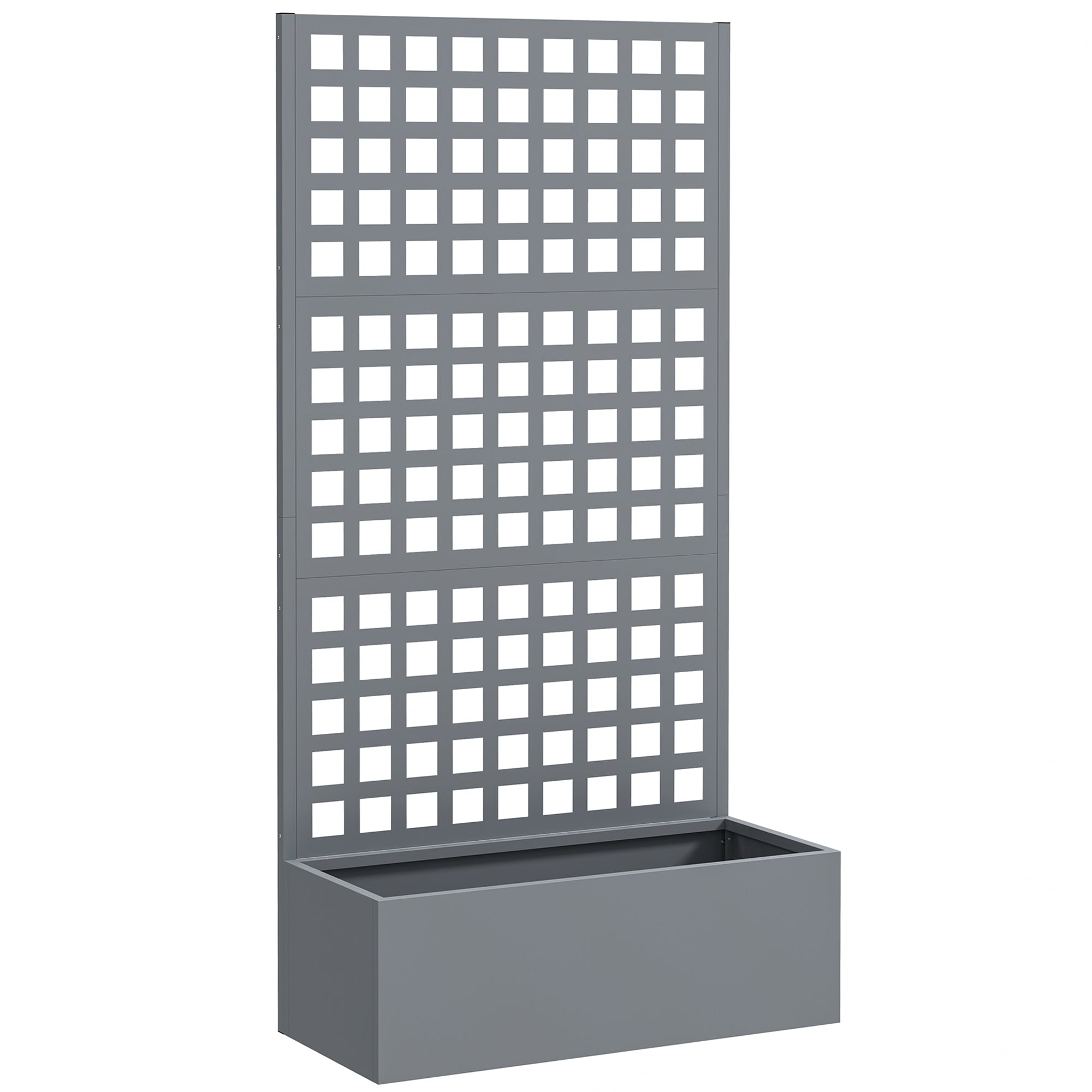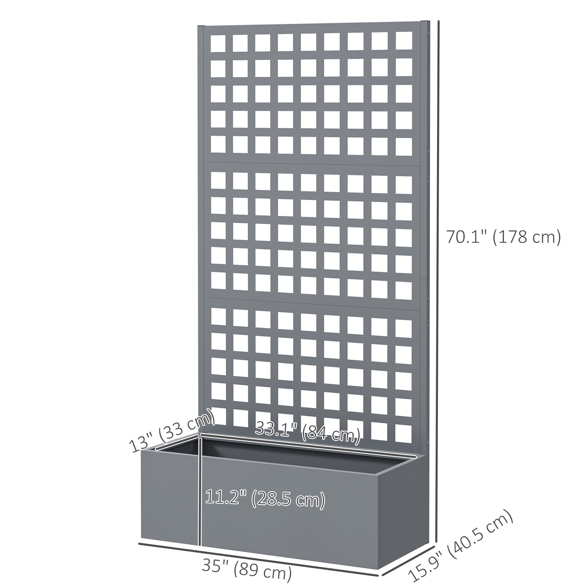 Craft your green haven with the Outsunny garden box with trellis! Made from galvanized steel, it resists rust and deformation, ensuring lasting beauty in your outdoor space. This unique raised planter box combines a planter with a trellis, and includes drainage holes to optimize plant health. Great as a metal raised garden bed or a vibrant flower bed, it also doubles as a charming privacy screen.