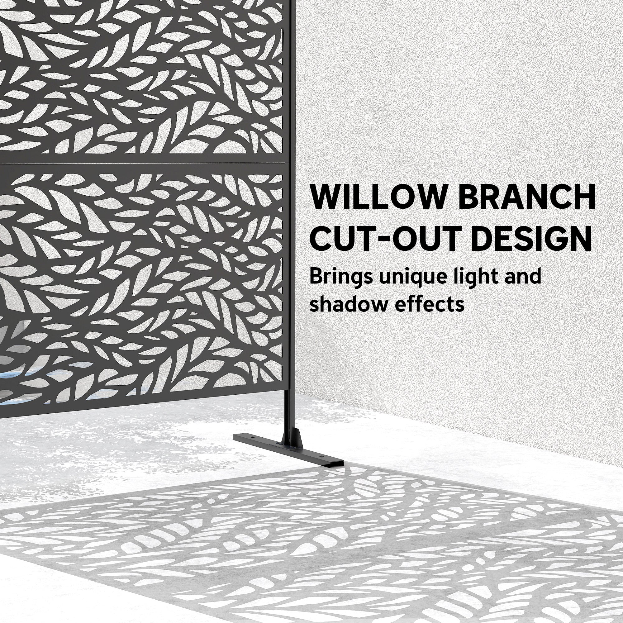 • Metal Outdoor Privacy Screen, 78" x 48" Freestanding Outdoor Divider with Stand, Decorative Privacy Panel with Willow Branch Cut-out Design for Garden Backyard, Black