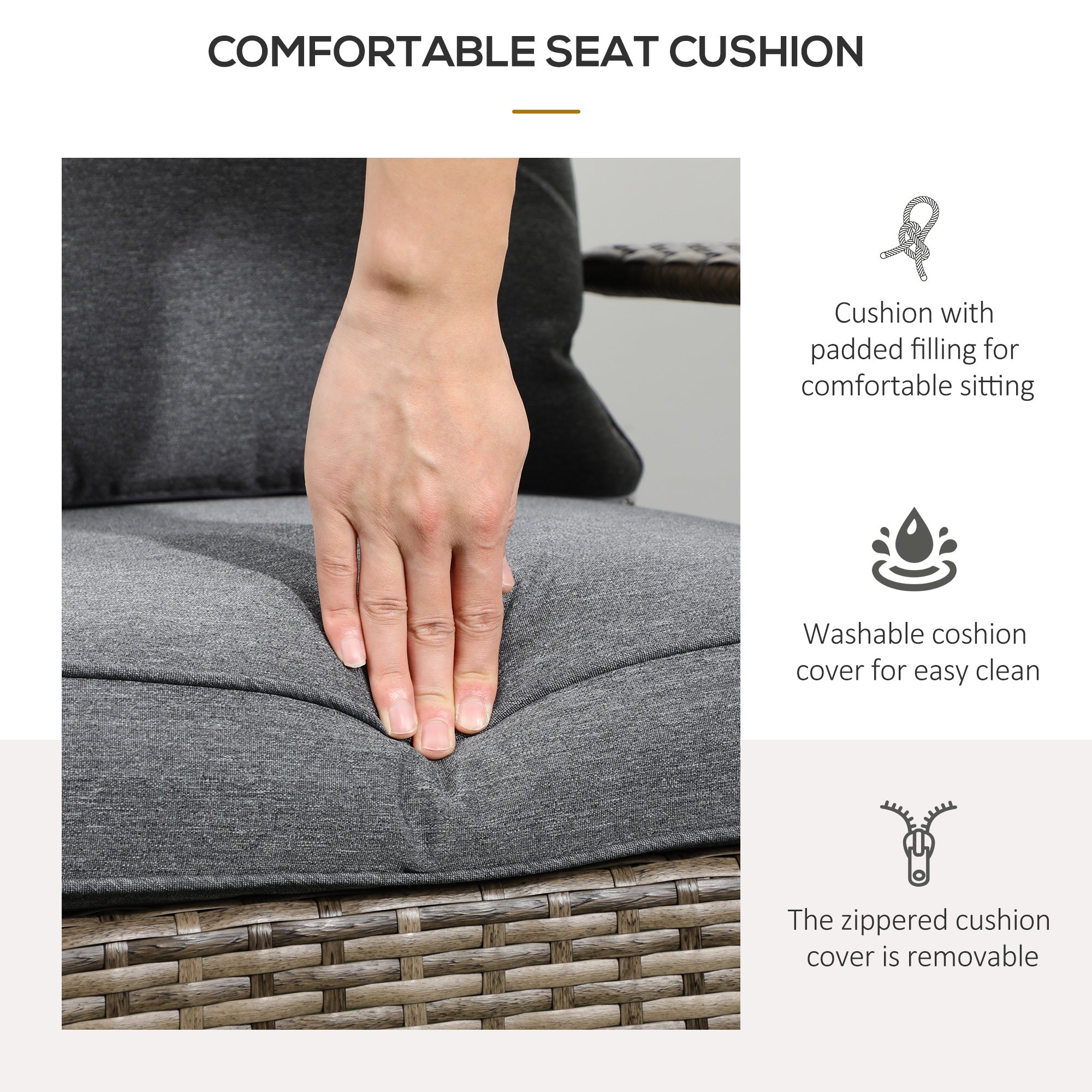 - Its cushion covers are easily removable and machine washable for easy cleaning;