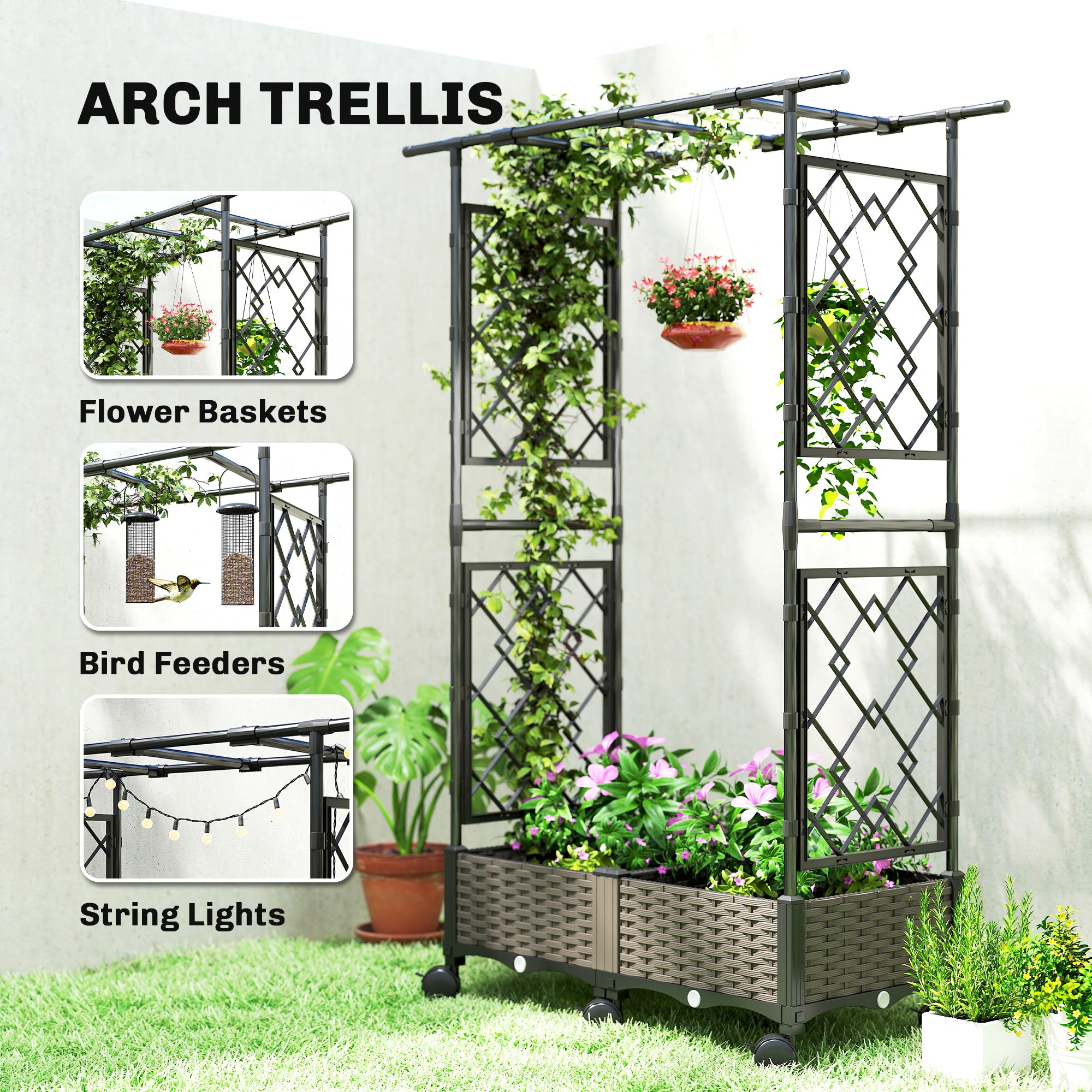 - Vertical Trellis Design: A unique arched top and two screen-like side trellises offer lots of vertical space, letting your climbing plants create a lush, layered garden with this multi-functional garden bed.