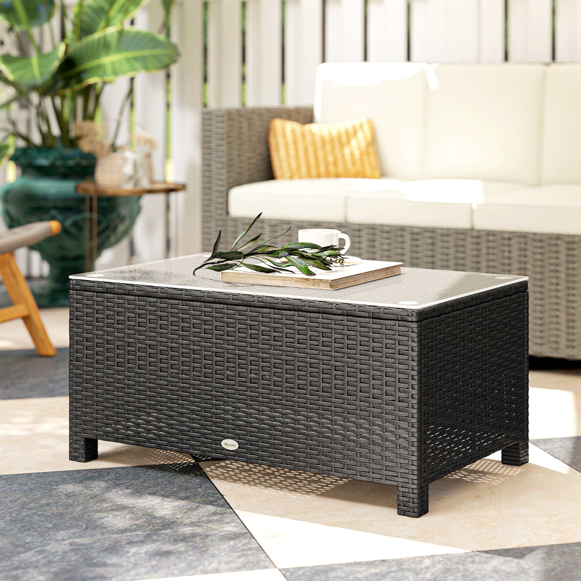 The Outsunny wicker outdoor coffee table, made of all-weather PE rattan, is an excellent addition to any patio furniture. Sit down and enjoy a cup of coffee or a pleasant meal outside, without having to worry about where to leave your plate. The outdoor table surface is easily cleaned.