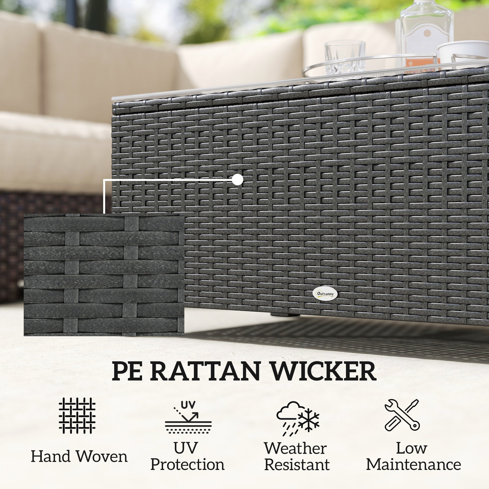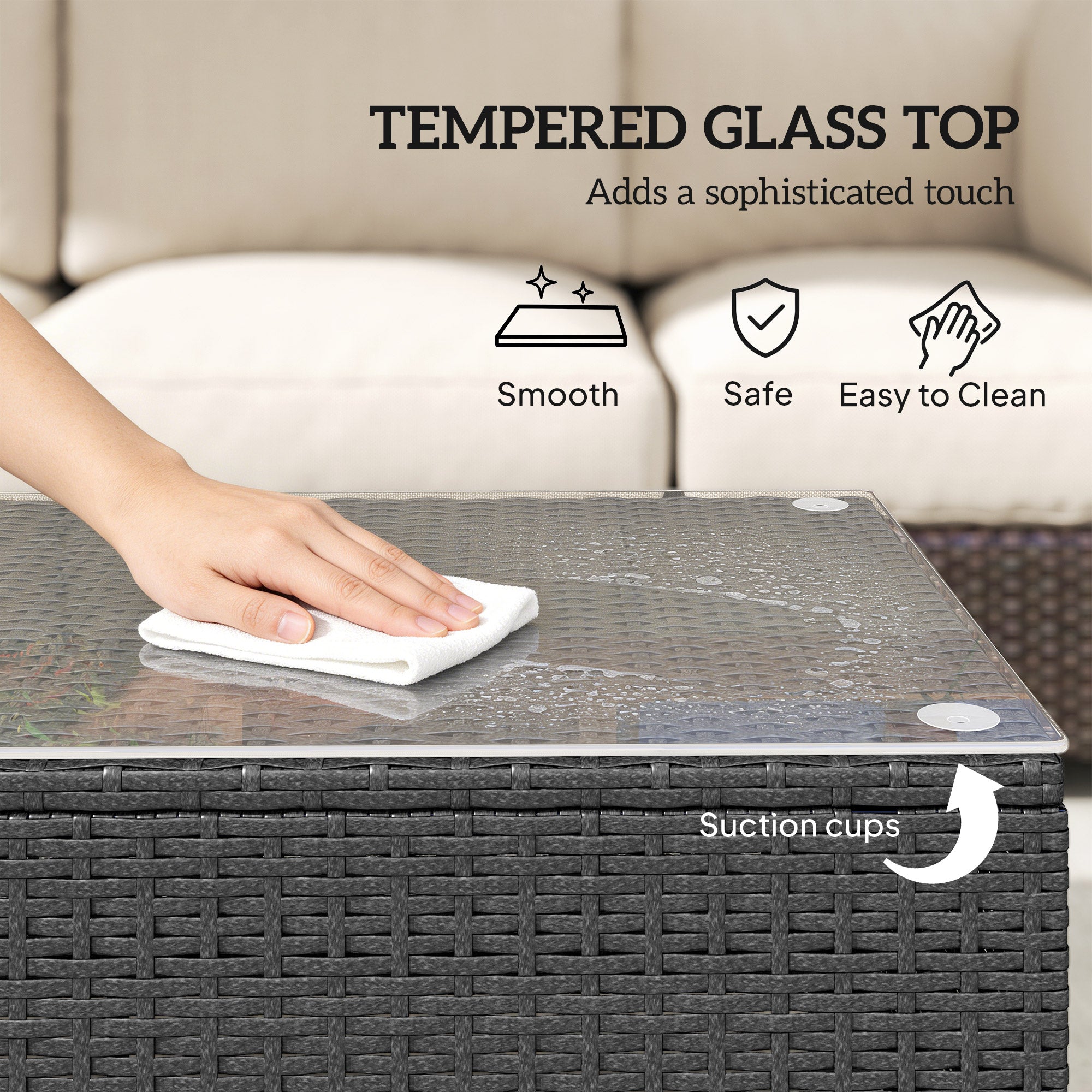 • Rattan Coffee Table, Patio Side Table, Hand-woven Wicker Furniture with Tempered Glass Top Outdoor Garden Patio, Dark Grey