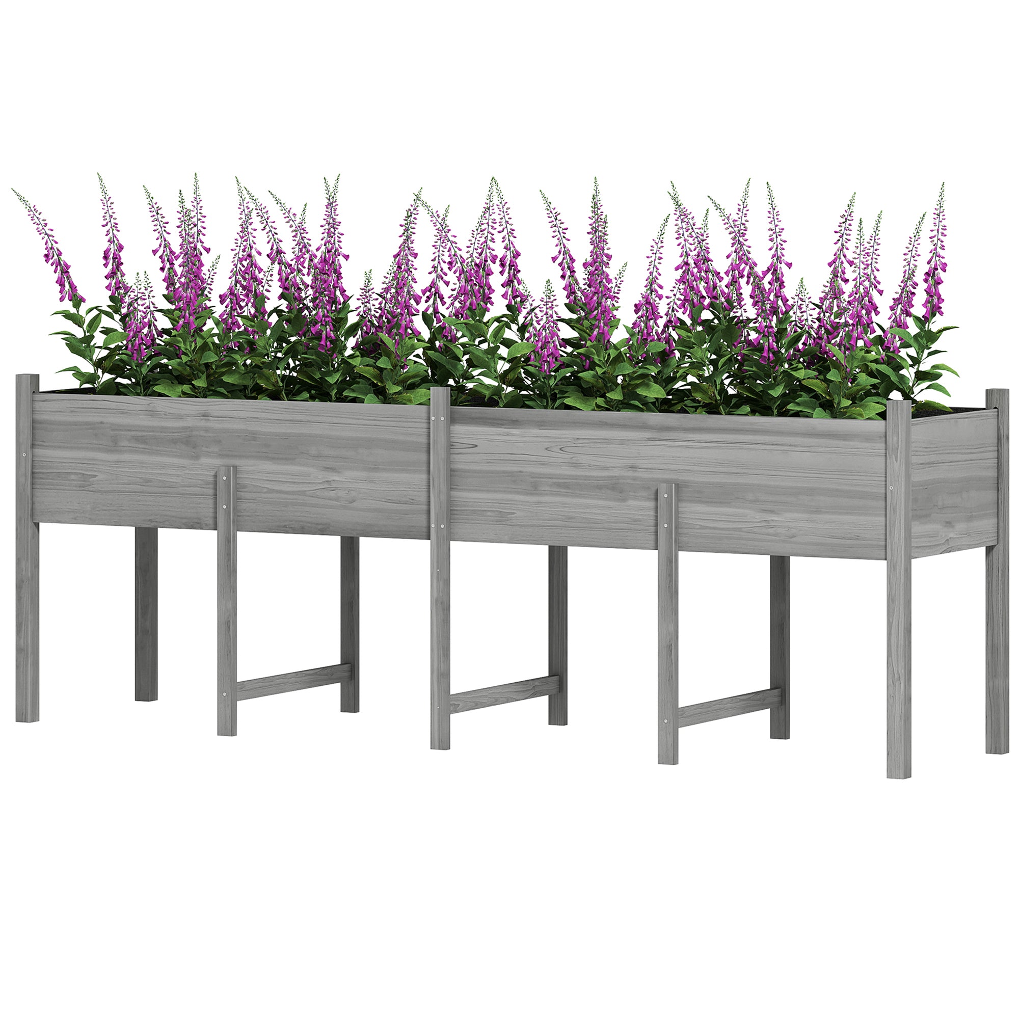 Outsunny offers an extra large raised garden planter. With 86.6" L x 19.7" W x 10.6" H (220 x 50 x 27 cm) (78.5 gallons) of elevated garden space and a heavy-duty 220 lbs (100 kg) weight capacity, our outsunny raised garden bed is a garden unto itself. Raised up on legs, it's ergonomic and away from animals. Our planter is self-draining, with a fabric barrier. It stops flowers from flooding and soil won't fall. Made of rustic fir wood keep it natural or paint it to match the look of your patio.