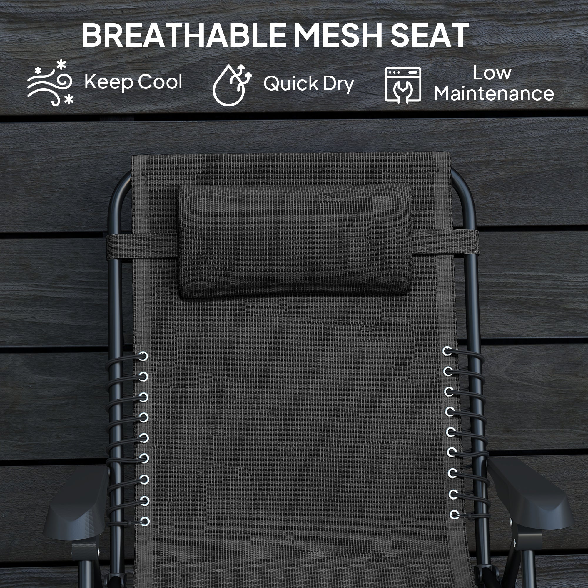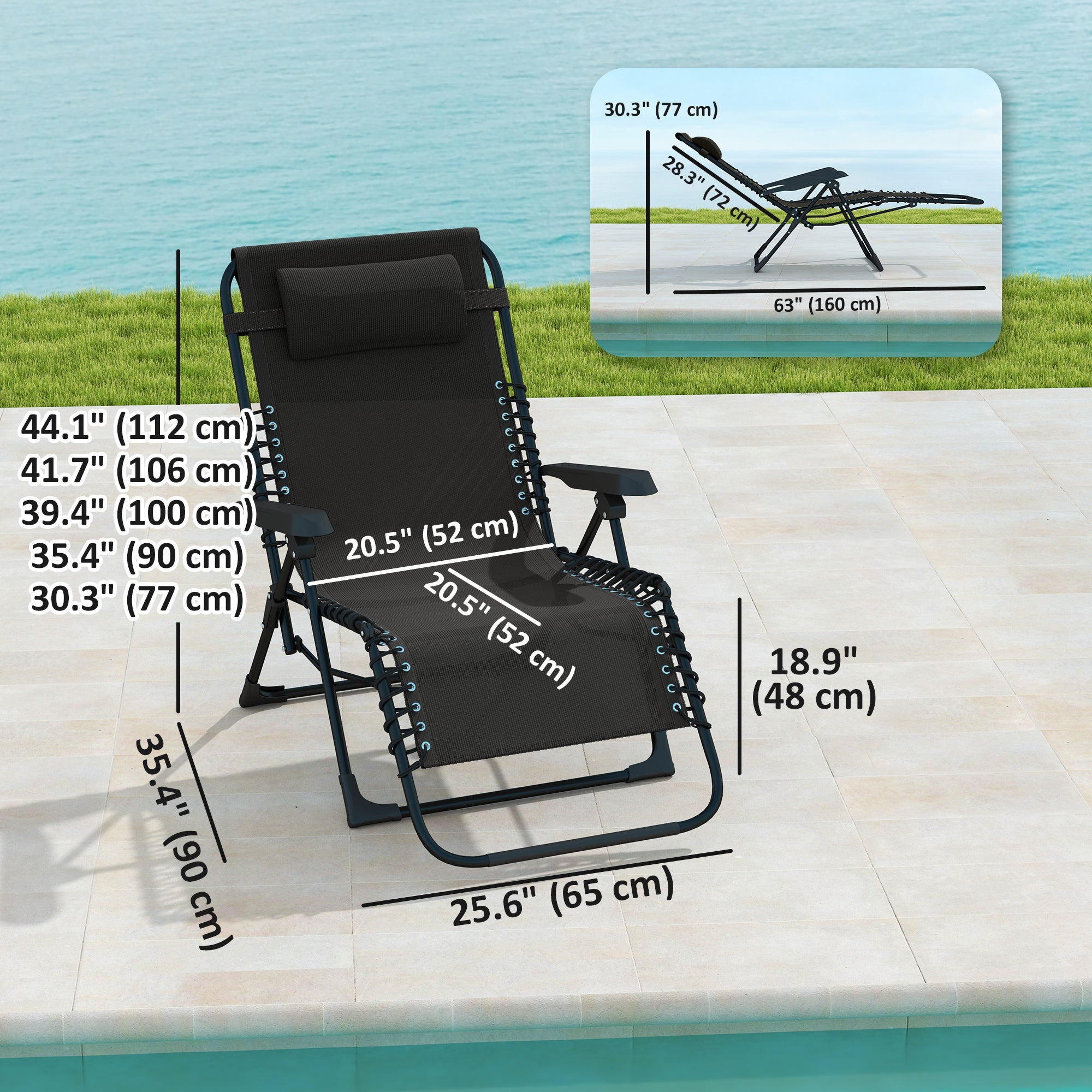 Bask in comfort with the Outsunny Outdoor Lounge Chair, featuring five reclining settings from upright to flat, ensuring a great angle for sunbathing. Crafted from quick-drying Texteline, this zero gravity chair is designed for long-lasting use. Complete with a cozy, removable pillow, our beach lounge chair is your go-to for relaxed, sunny days in the garden.
