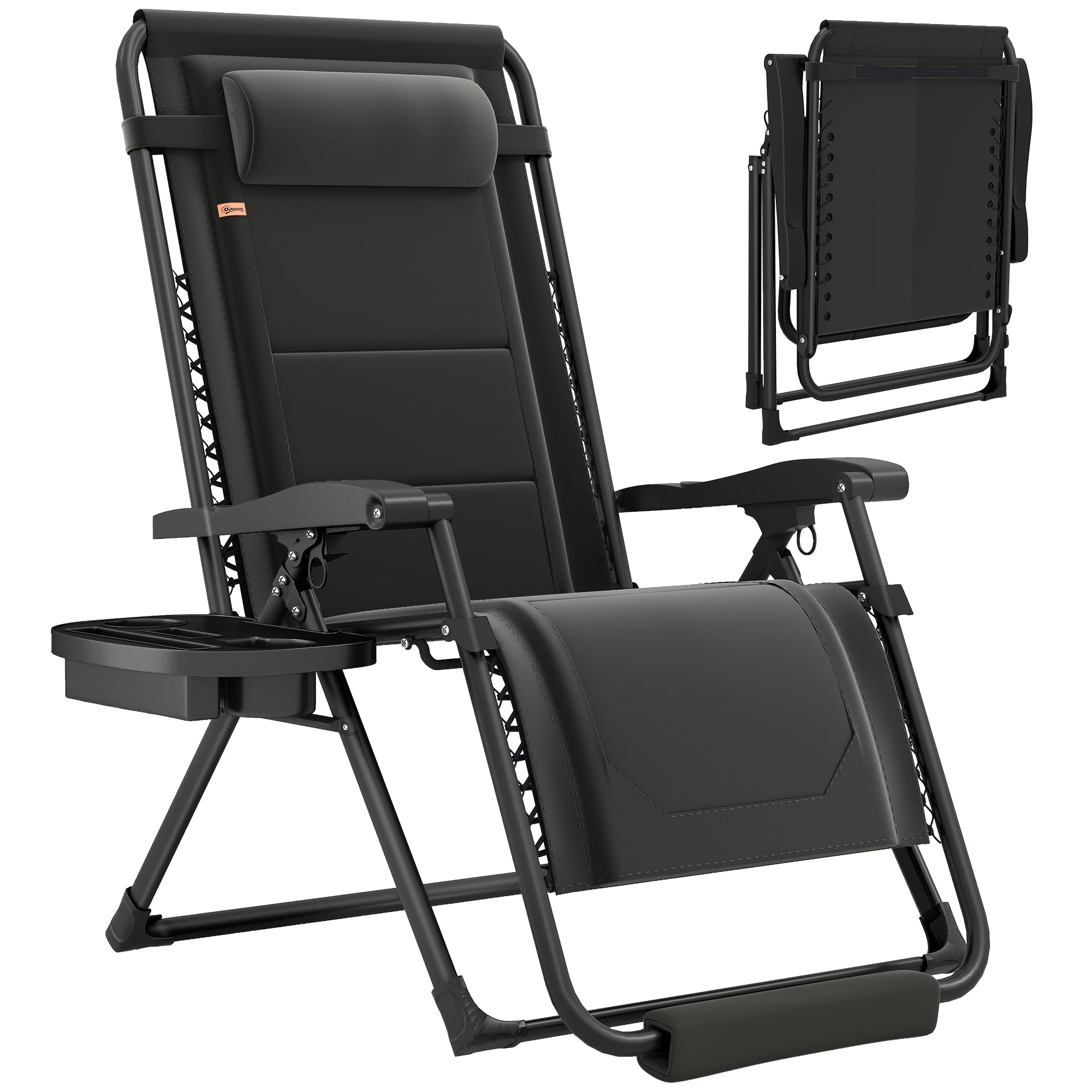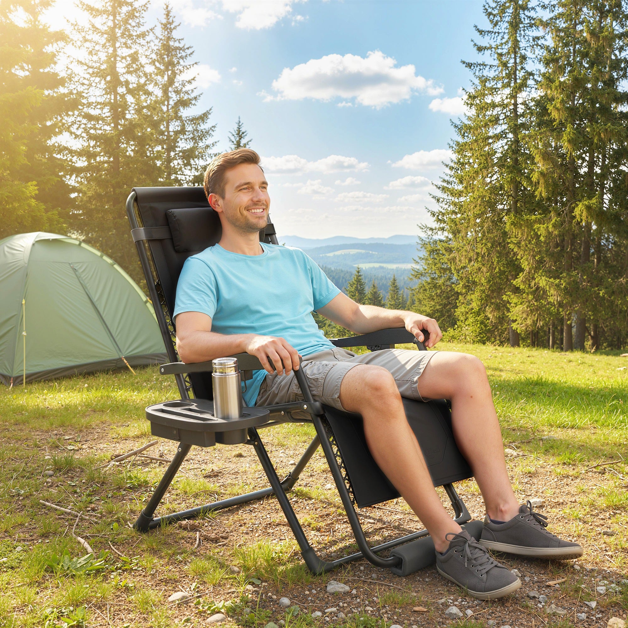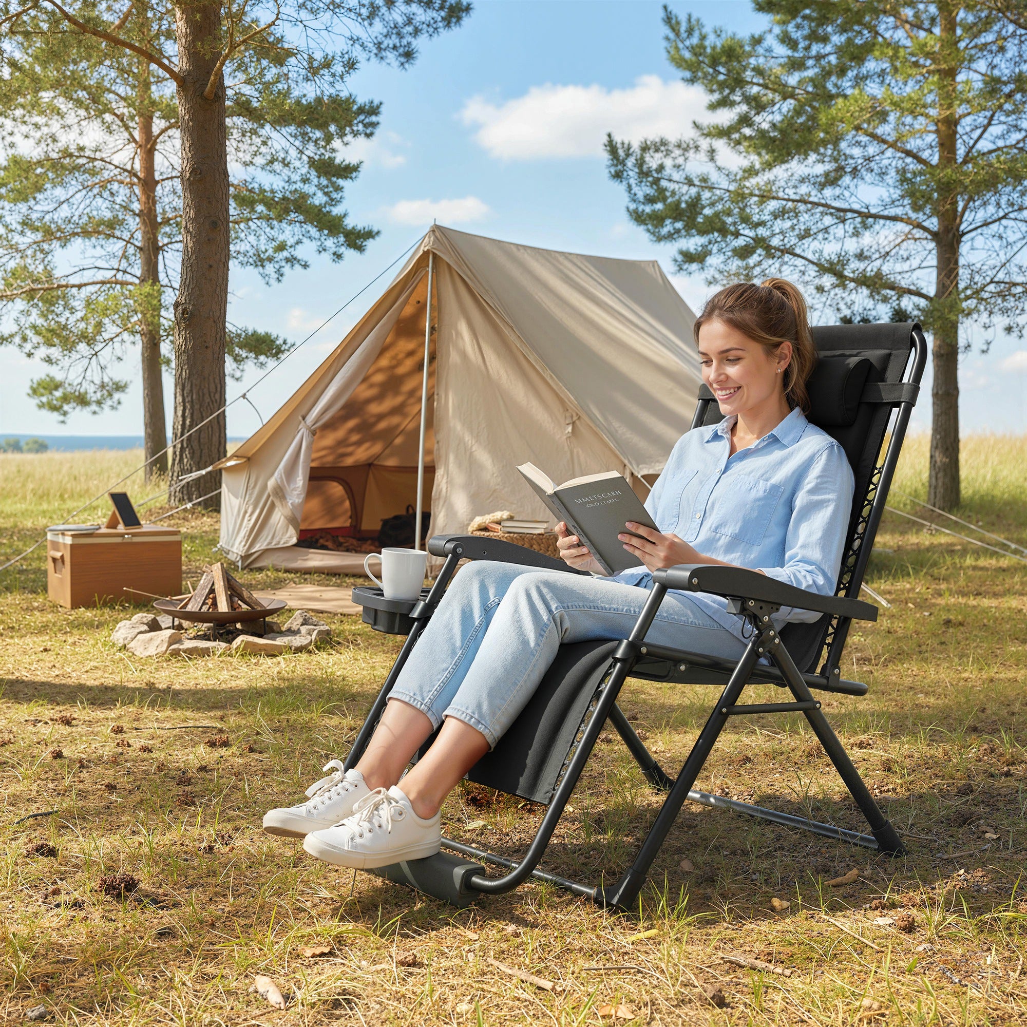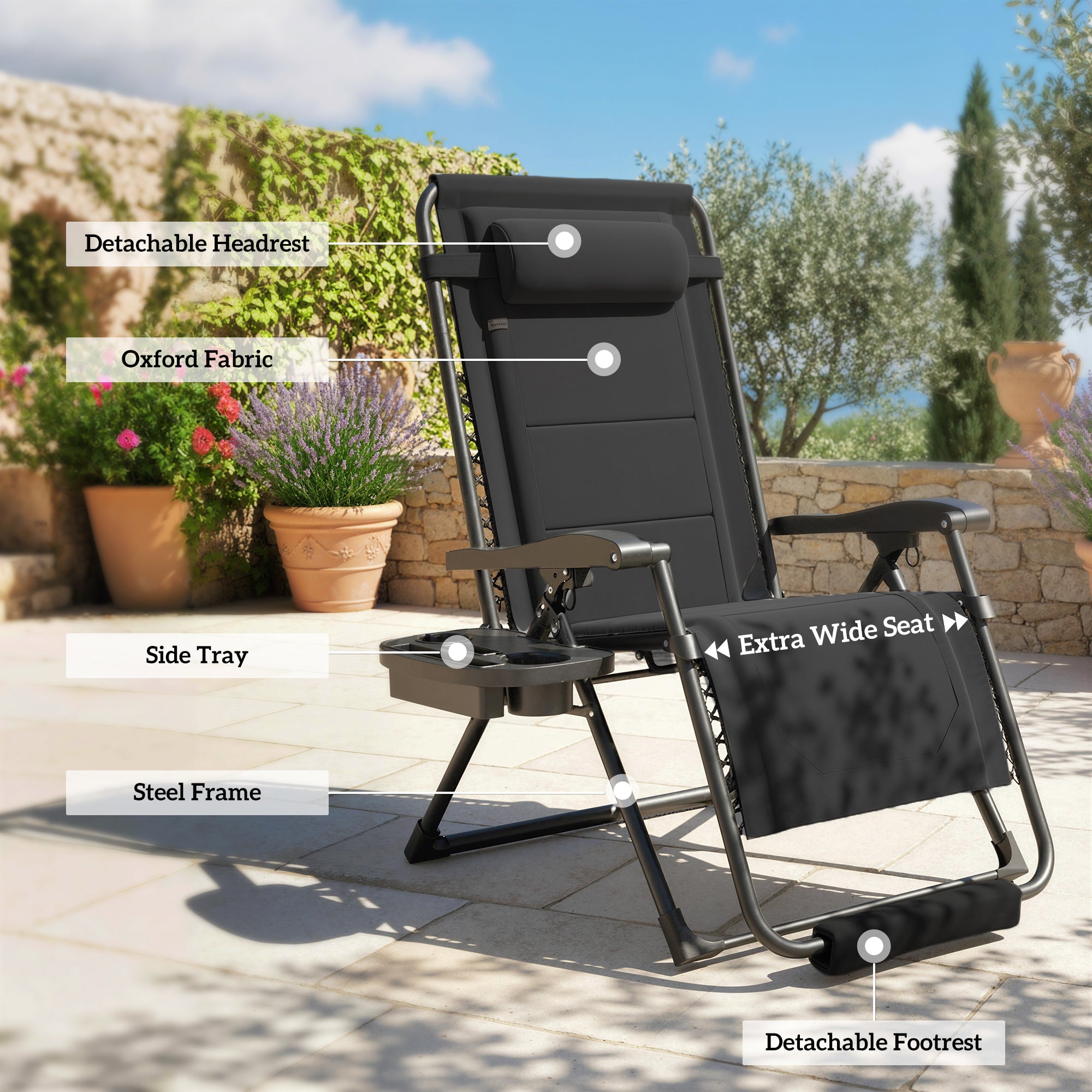 • Zero Gravity Lounger Chair, Padded Folding Reclining Patio Chair with Cup Holder, Detachable Headrest, Extra Wide Seat, 400 LBS Capacity for Pool, Camping, Black