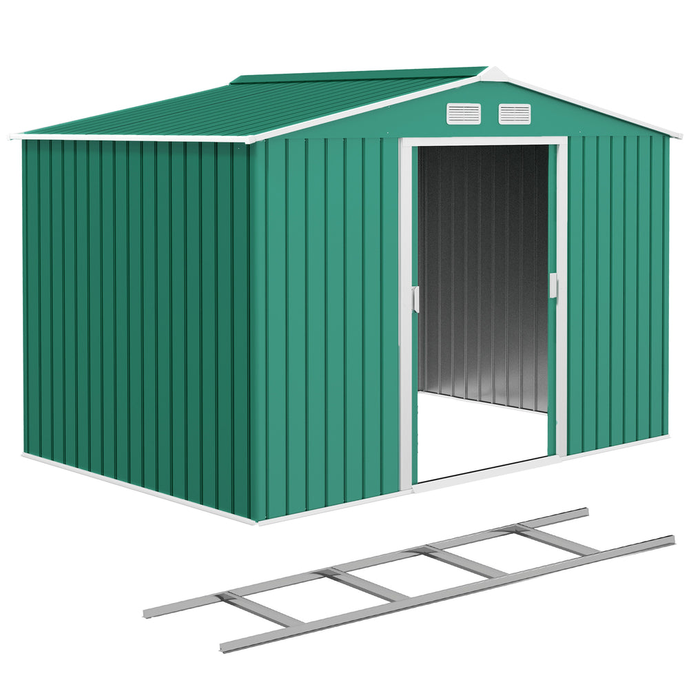 Why This Size ?Ideal for side yards or garden lanes—neatly fits two bikes, a mower, long tools, and a shelf unit.
