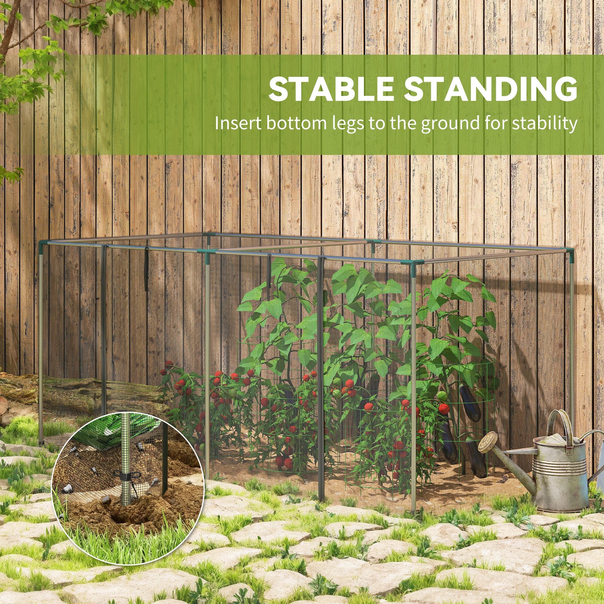 - Stable Standing: Insert the bottom frame deeply into the soil. Doing this will help your fruit cage for the garden form a secure grip on the ground, even during windy conditions.