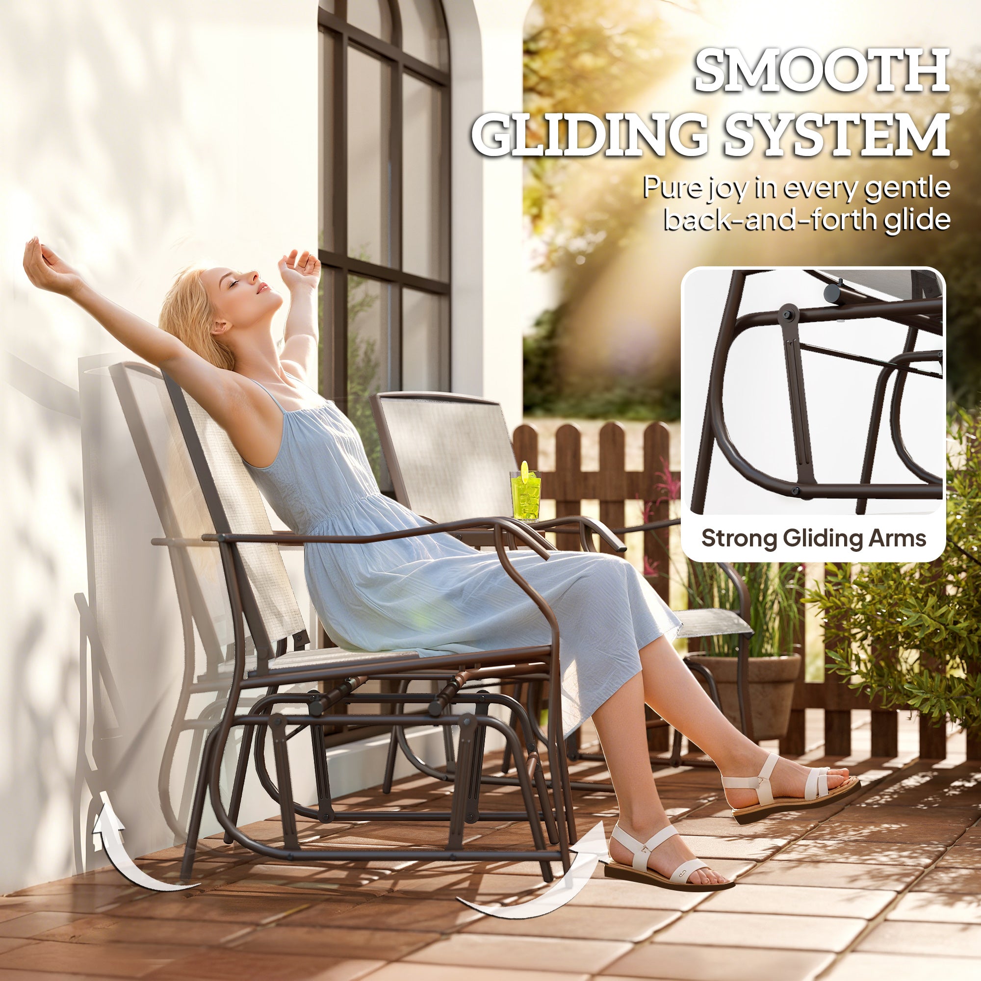 - Made Outdoor In Mind: Ergonomically designed, the cover of the outdoor glider chair is made of metal frame with high-quality powder-coated finish, the seat and backrest wrapped with breathable sling mesh fabric for quick-drying.