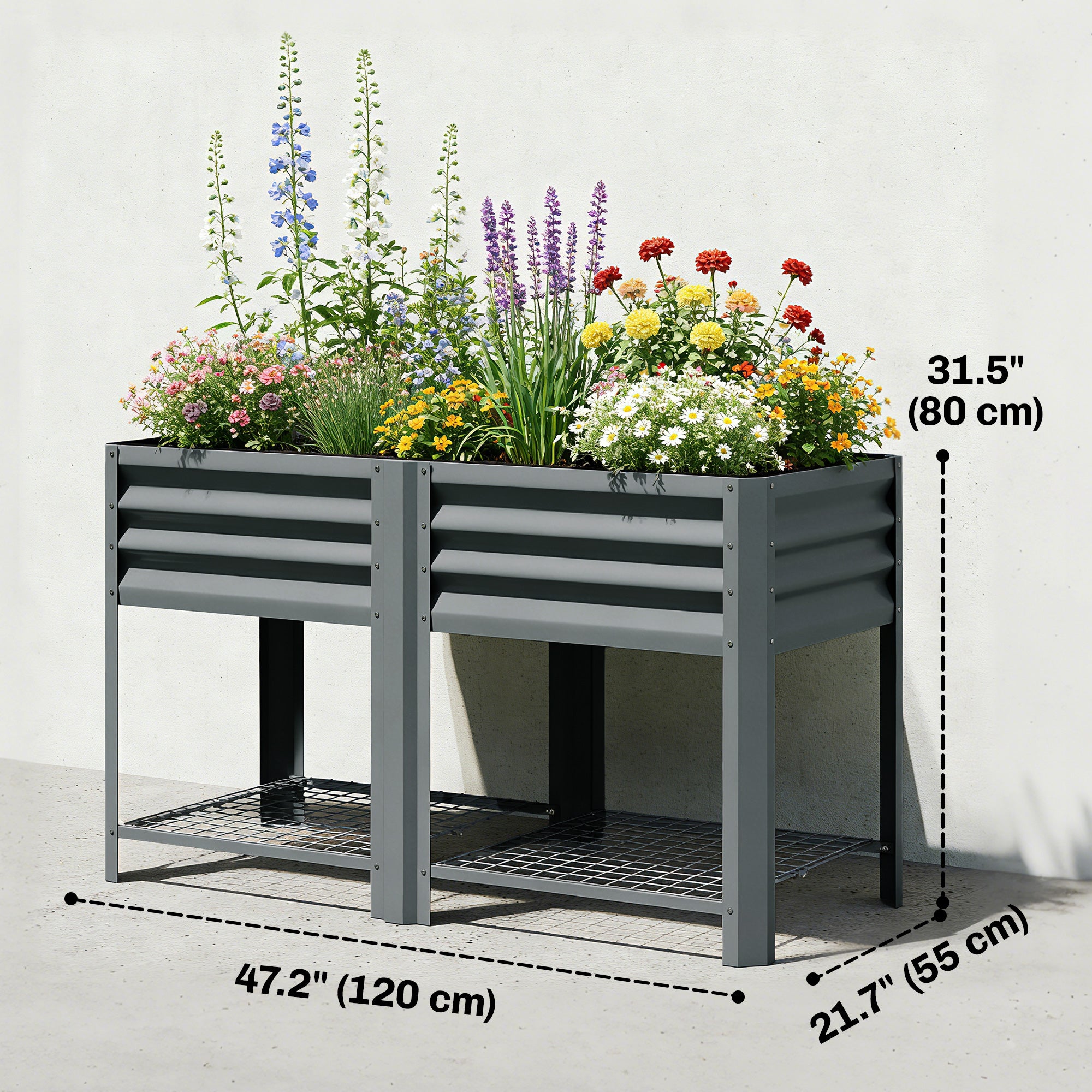- Outdoor Structure: Built with galvanized steel legs and panels, this powder-coated raised planter holds up to 396 lbs., ensuring a steady, long-lasting outdoor setup season after season