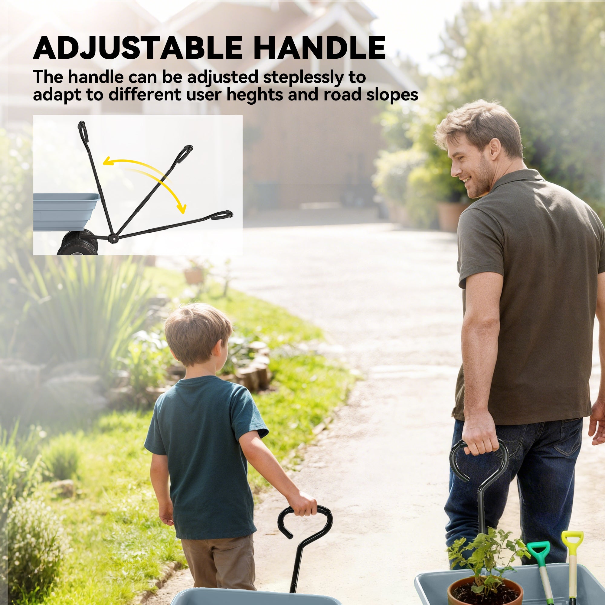 - Quick & Easy Unloading: Say goodbye to mess and hassle! This trolley cart's innovative plastic bed tilts for effortless unloading, allowing you to dispose of peat, dry leaves, or garden debris quickly in seconds.