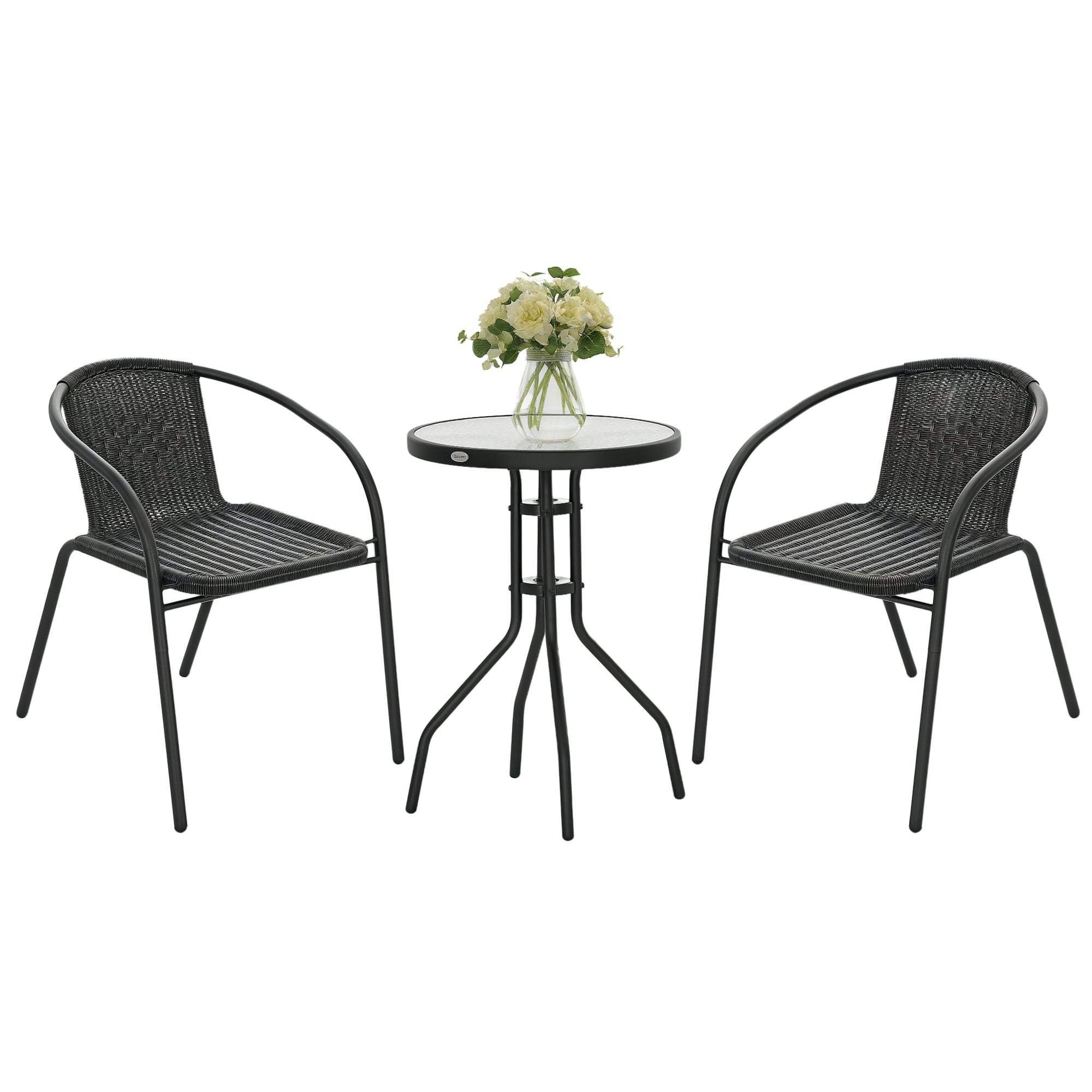 • 3 Pieces Rattan Bistro Set, 2 Seater Garden Furniture Set with Coffee Table and Stackable Chairs, Wicker Outdoor Table and Chairs for Garden, Porch, Balcony, Black