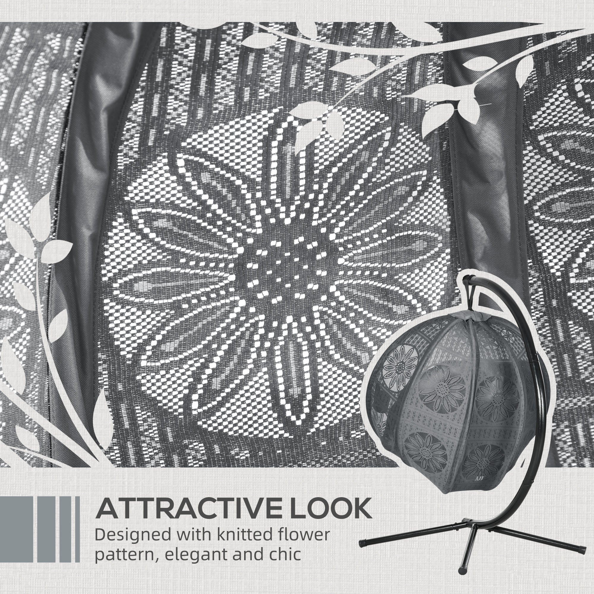 Outdoor Hanging Chair, Swing Chair with Metal Stand, Thick Padded Cushion, Foldable Basket and Side Pocket, for Indoor and Outdoor, Charcoal Grey