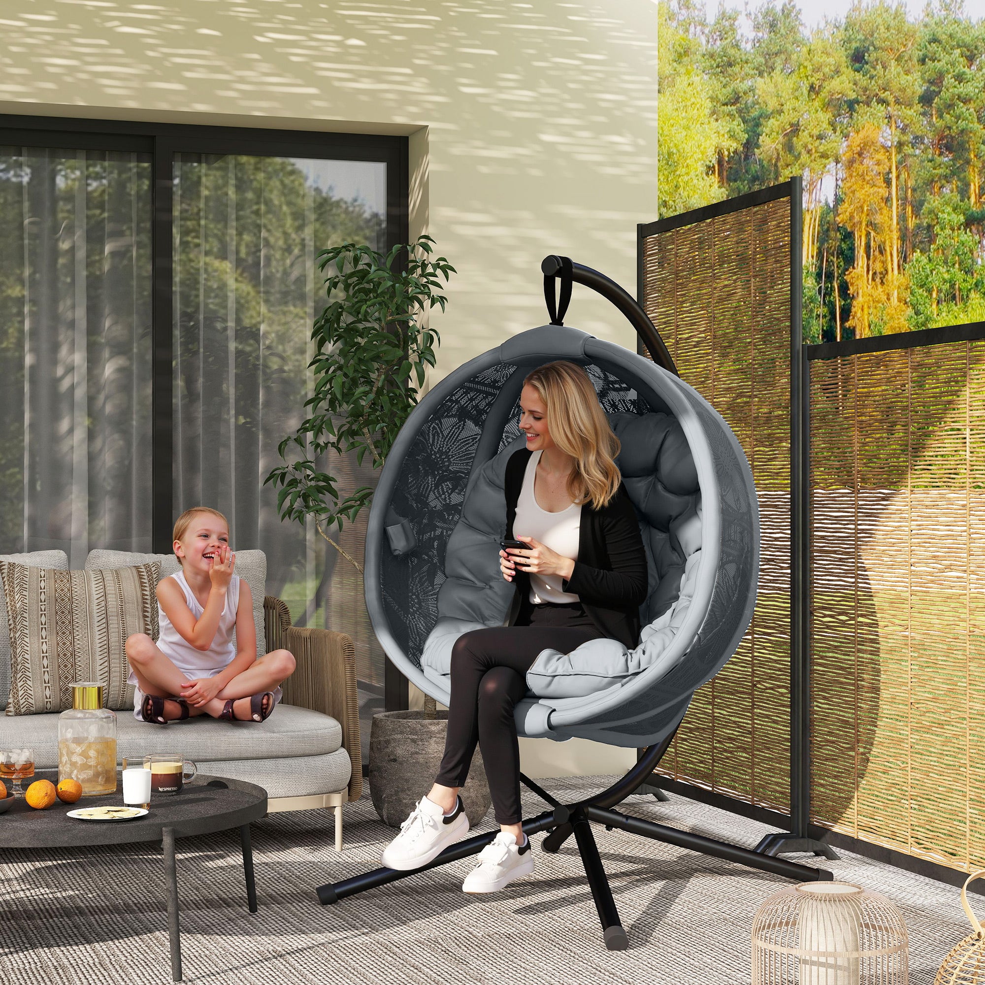 • Outdoor Hanging Chair, Swing Chair with Metal Stand, Thick Padded Cushion, Foldable Basket and Side Pocket, for Indoor and Outdoor, Charcoal Grey